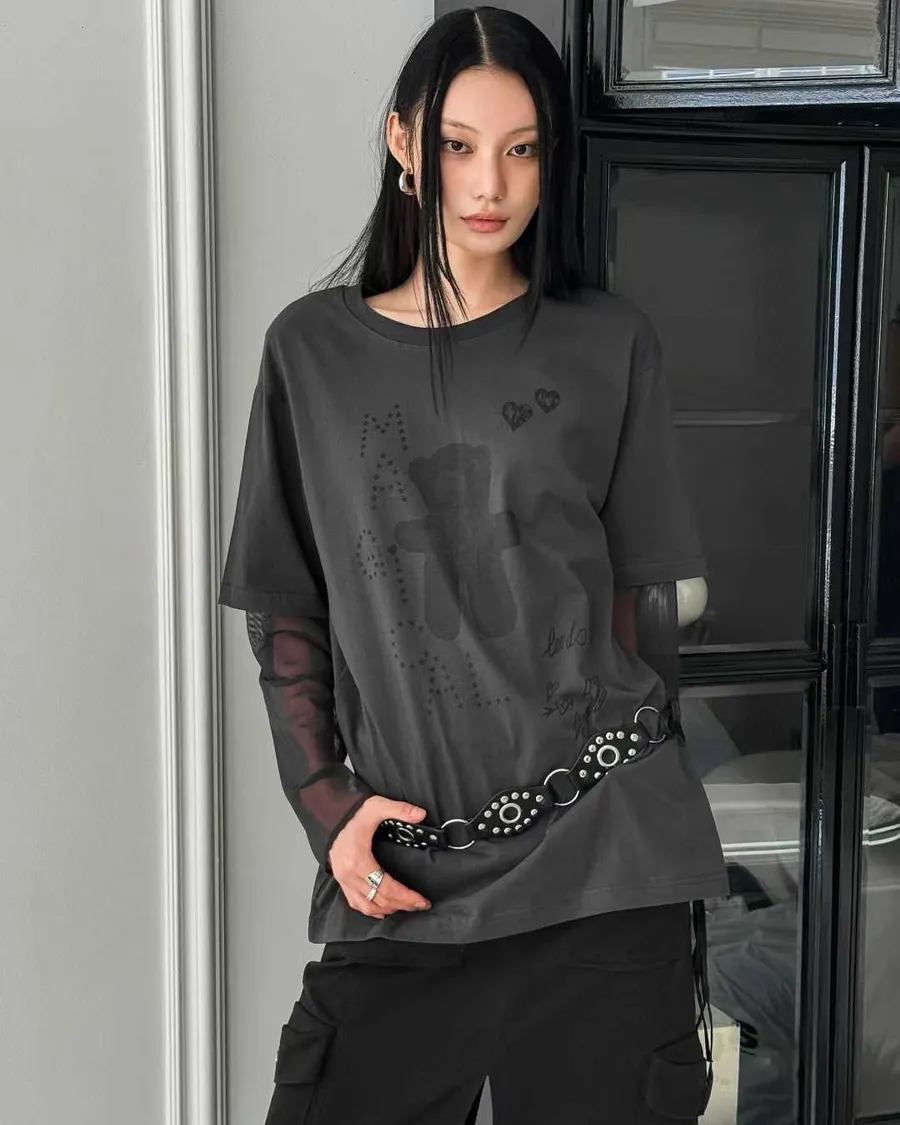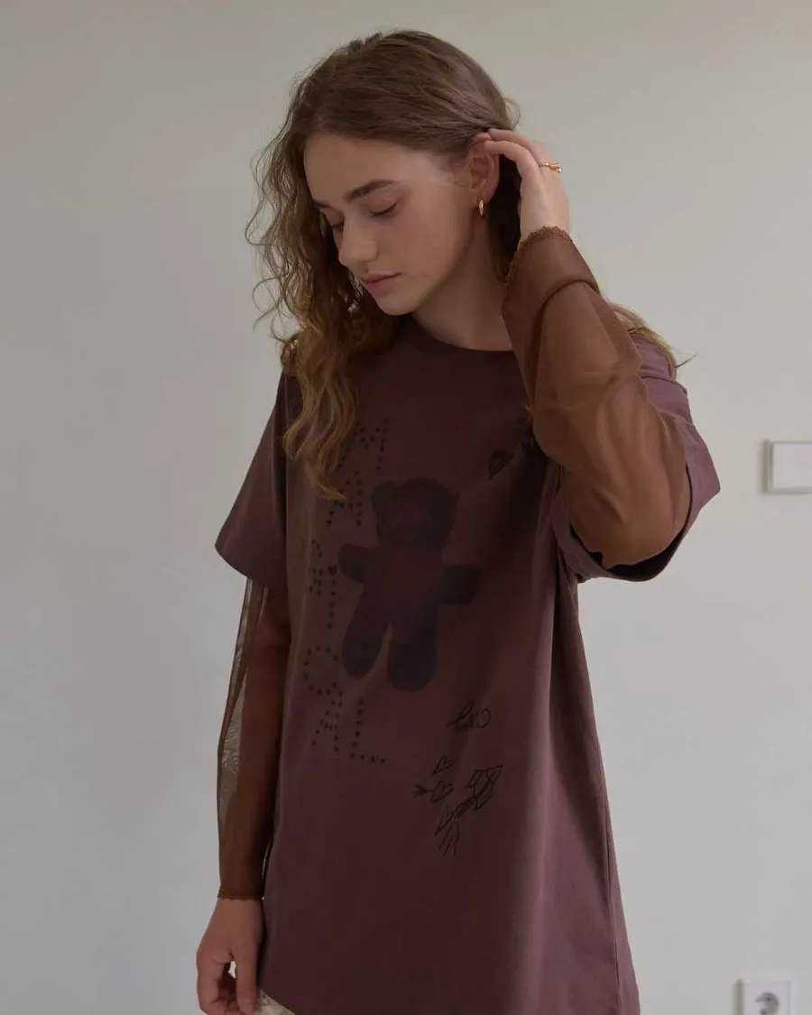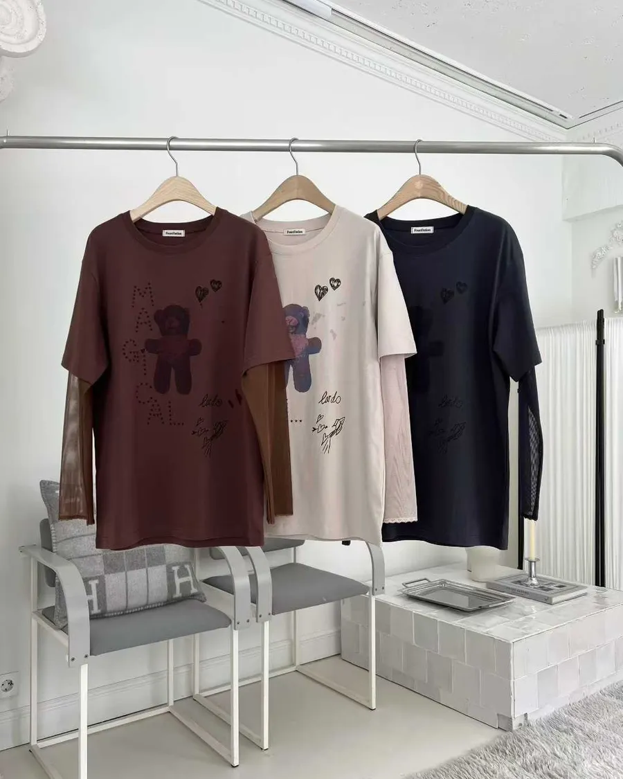 - 泰迪熊印花+手繪字樣 → 街頭童趣。