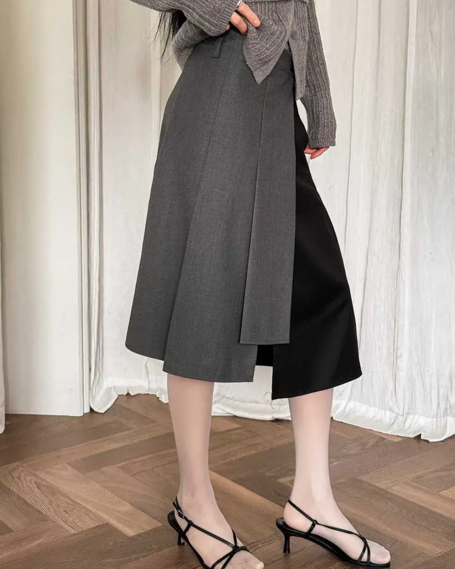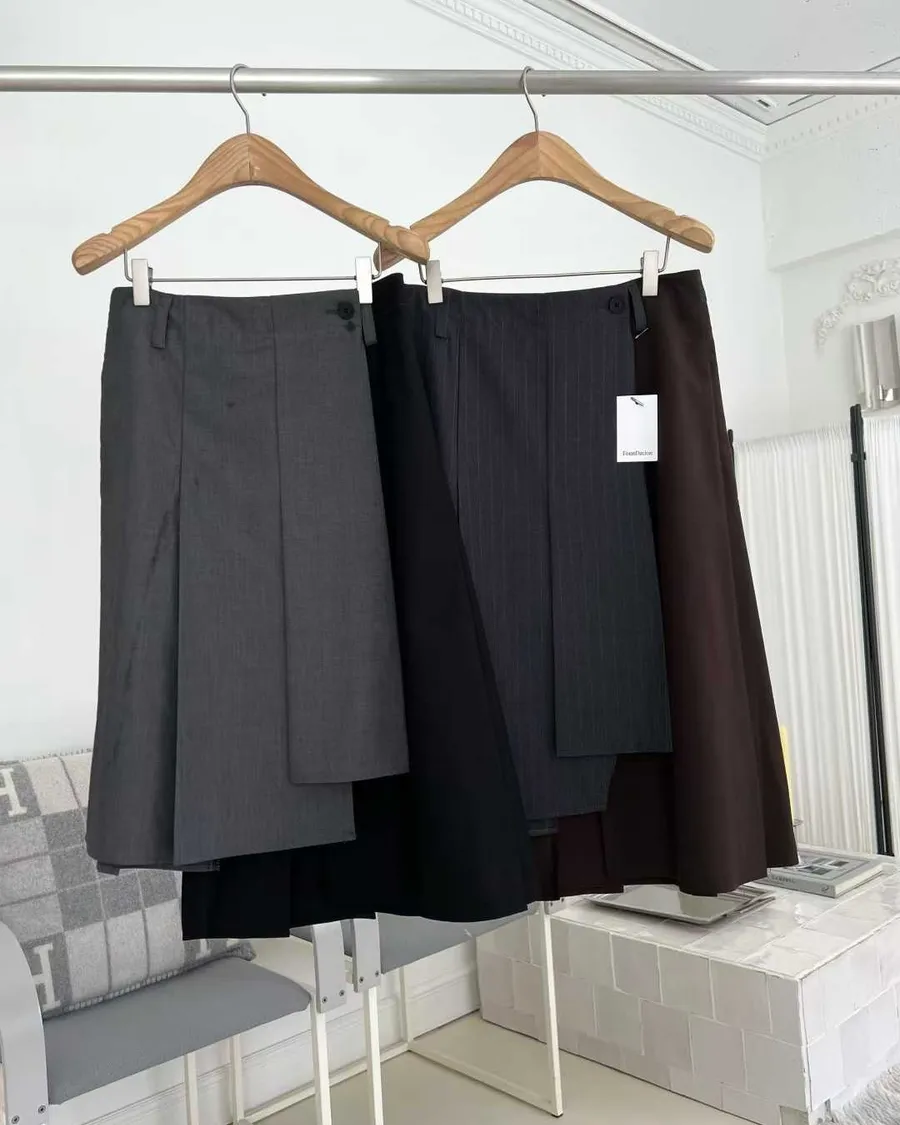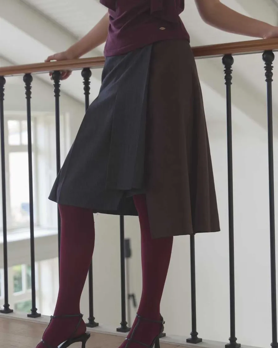 PARTYAN 韓國直送 Aurora Dual-Pane Pleated Skirt|極光雙拼不對稱一片顯瘦百摺裙
