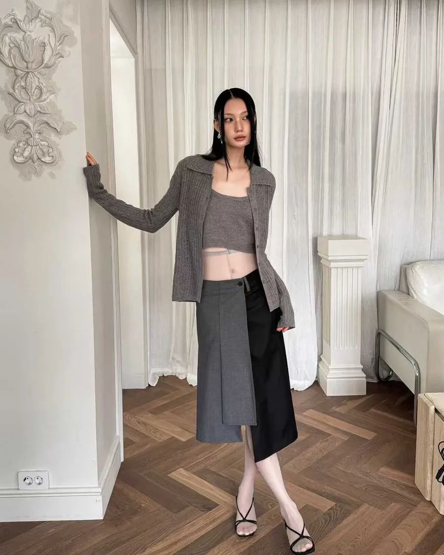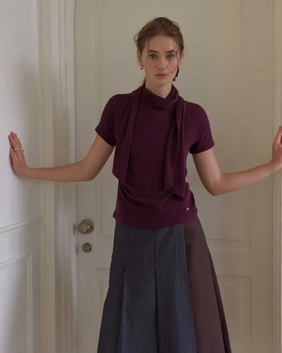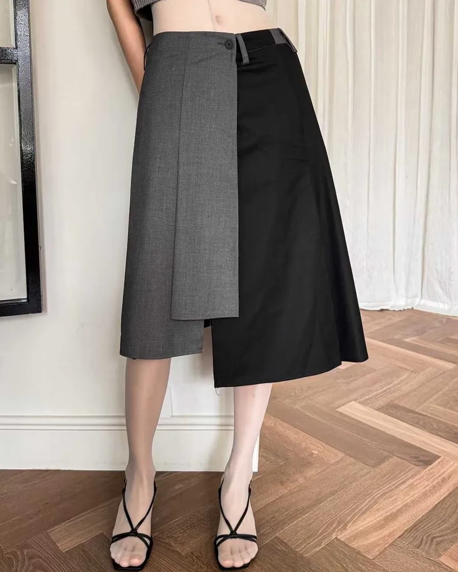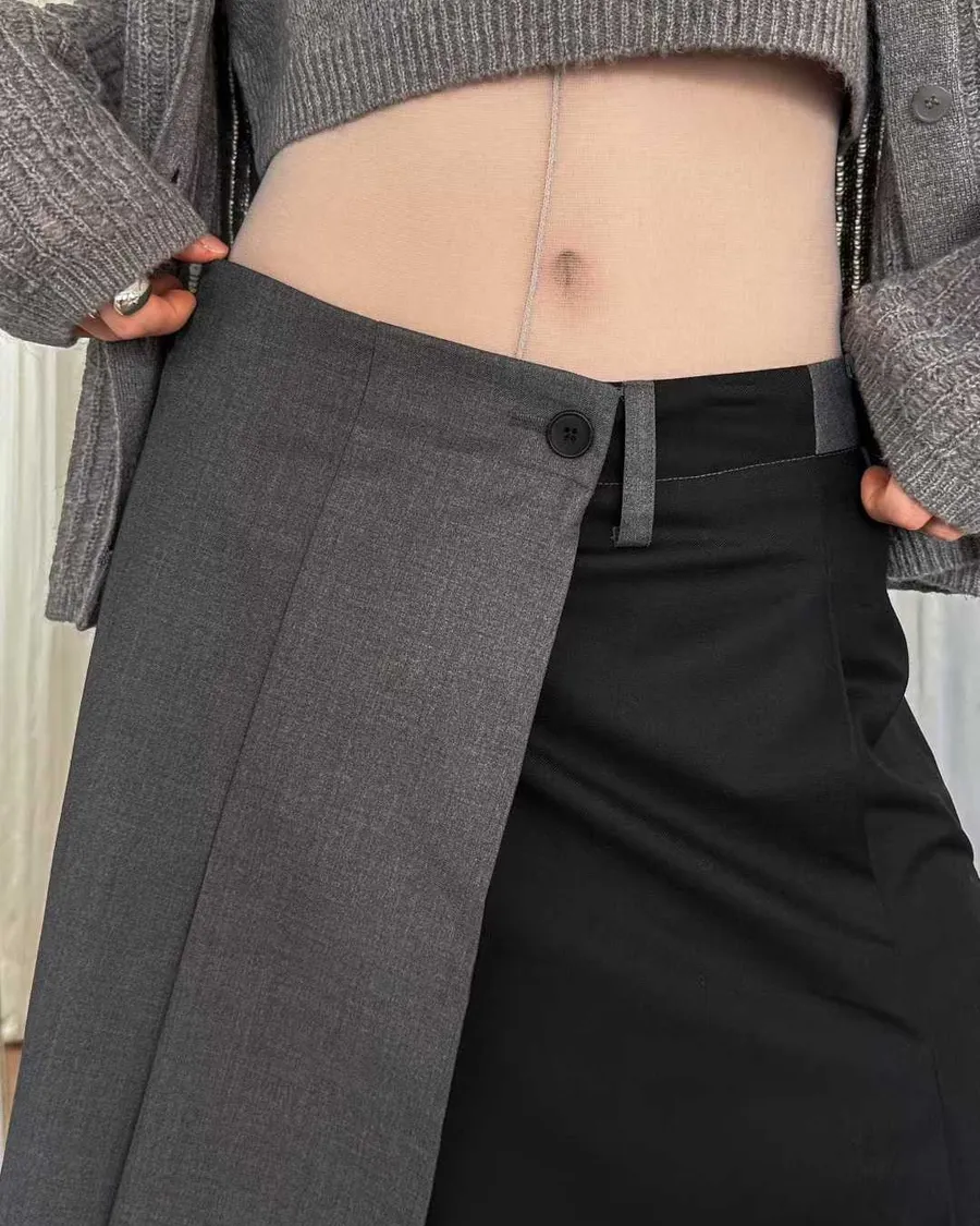 PARTYAN 韓國直送 Aurora Dual-Pane Pleated Skirt|極光雙拼不對稱一片顯瘦百摺裙