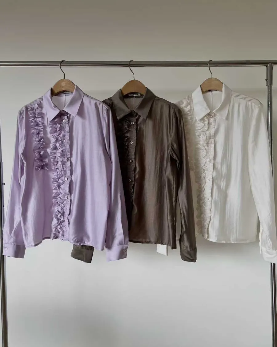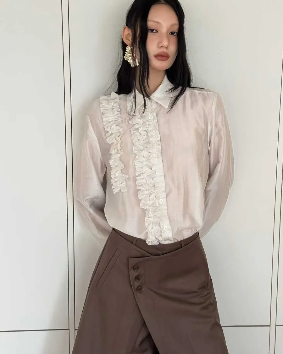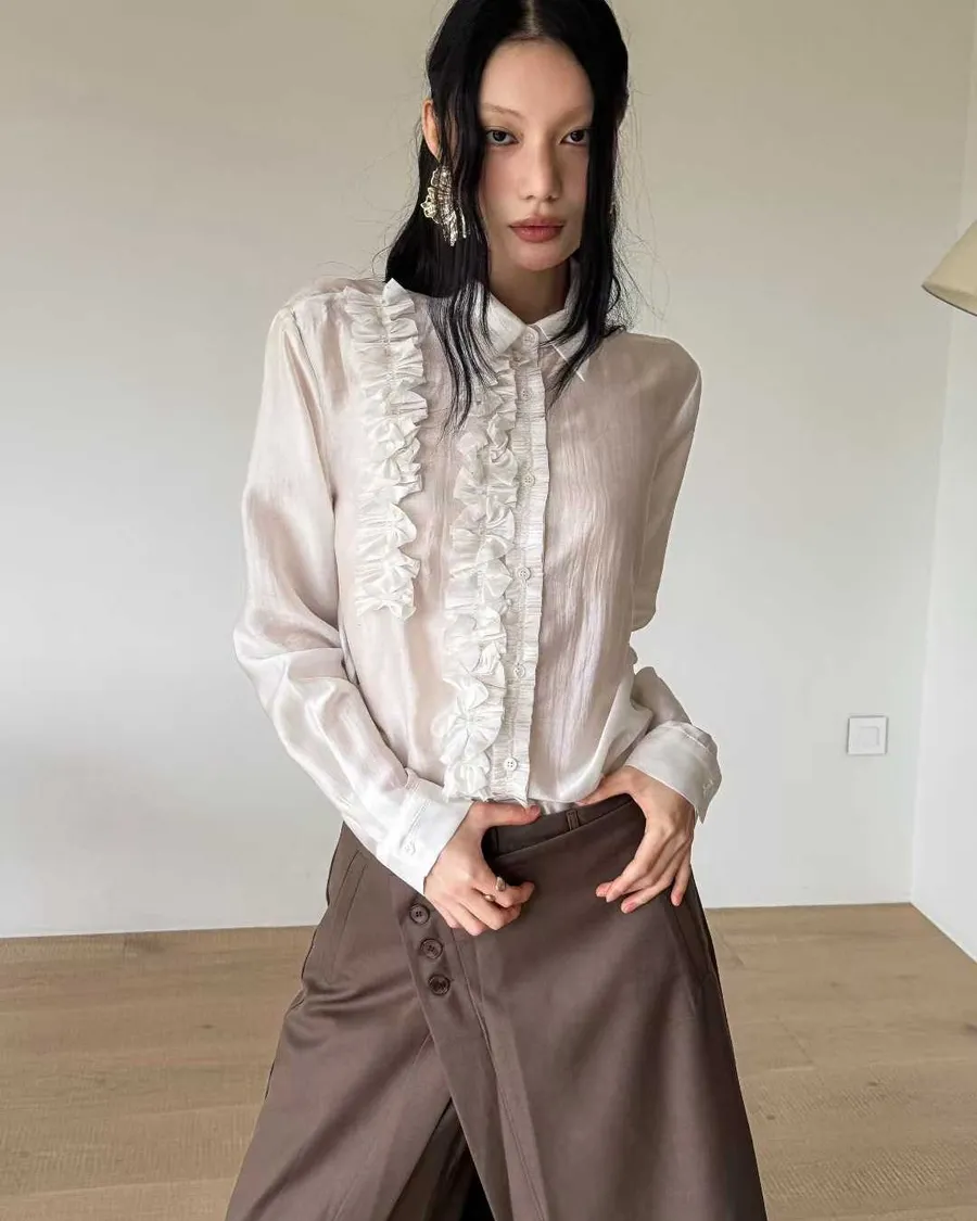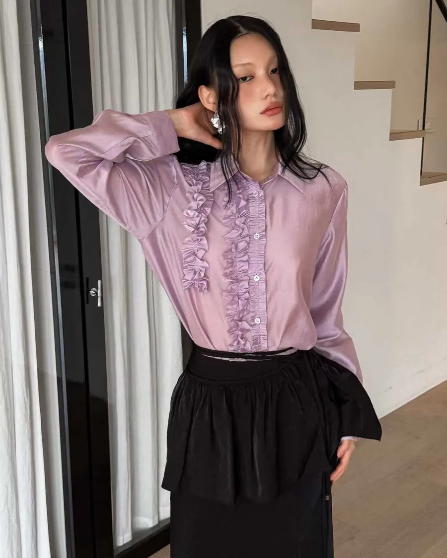 PARTYAN 韓國直送 Rosée Frill Satin Blouse|玫瑰荷葉絲緞襯衫