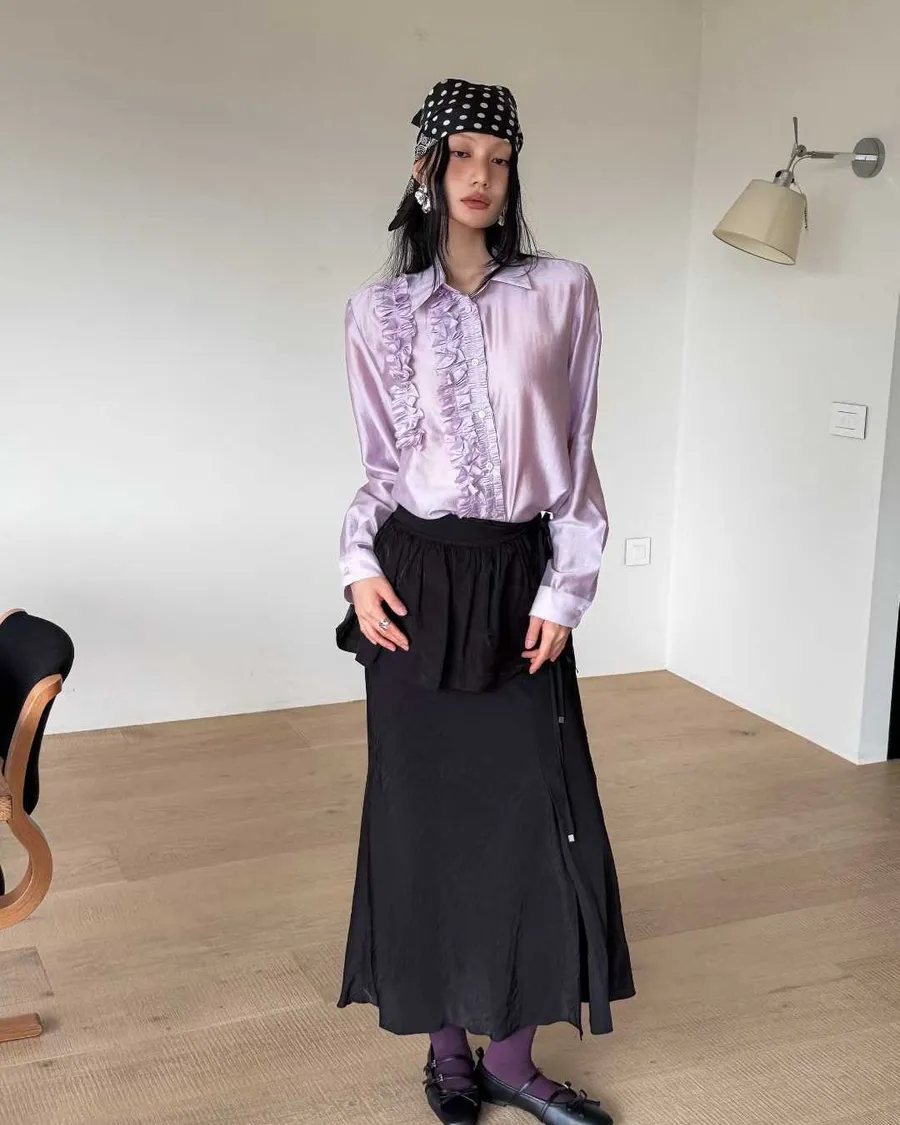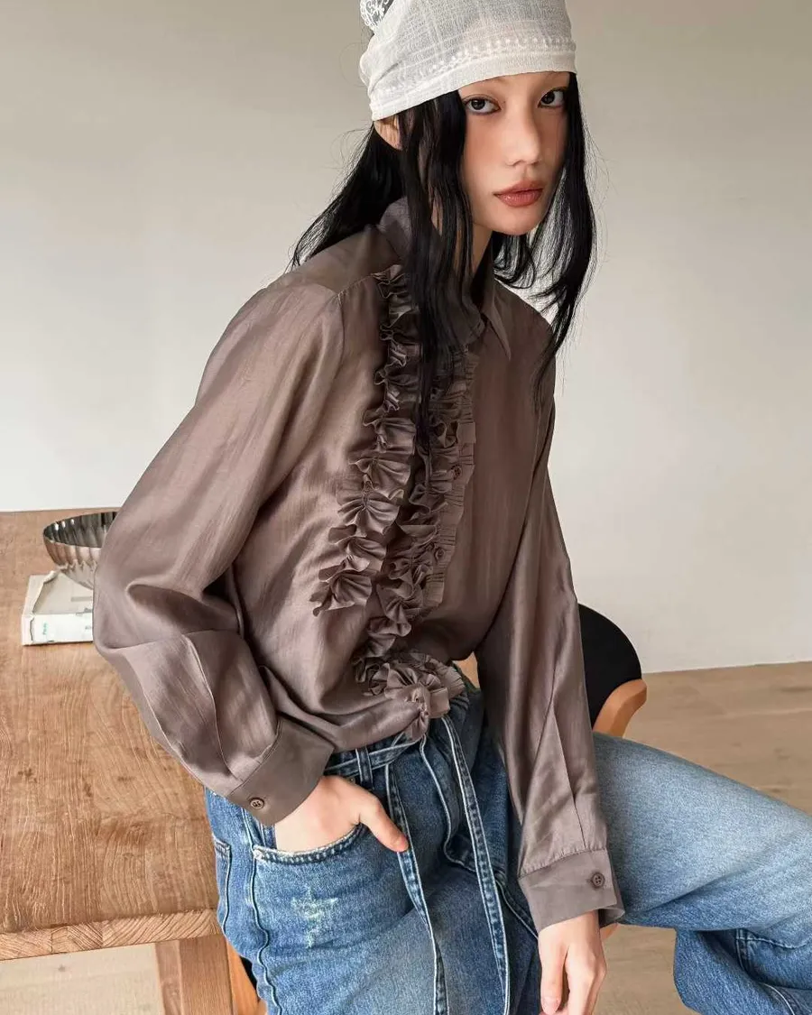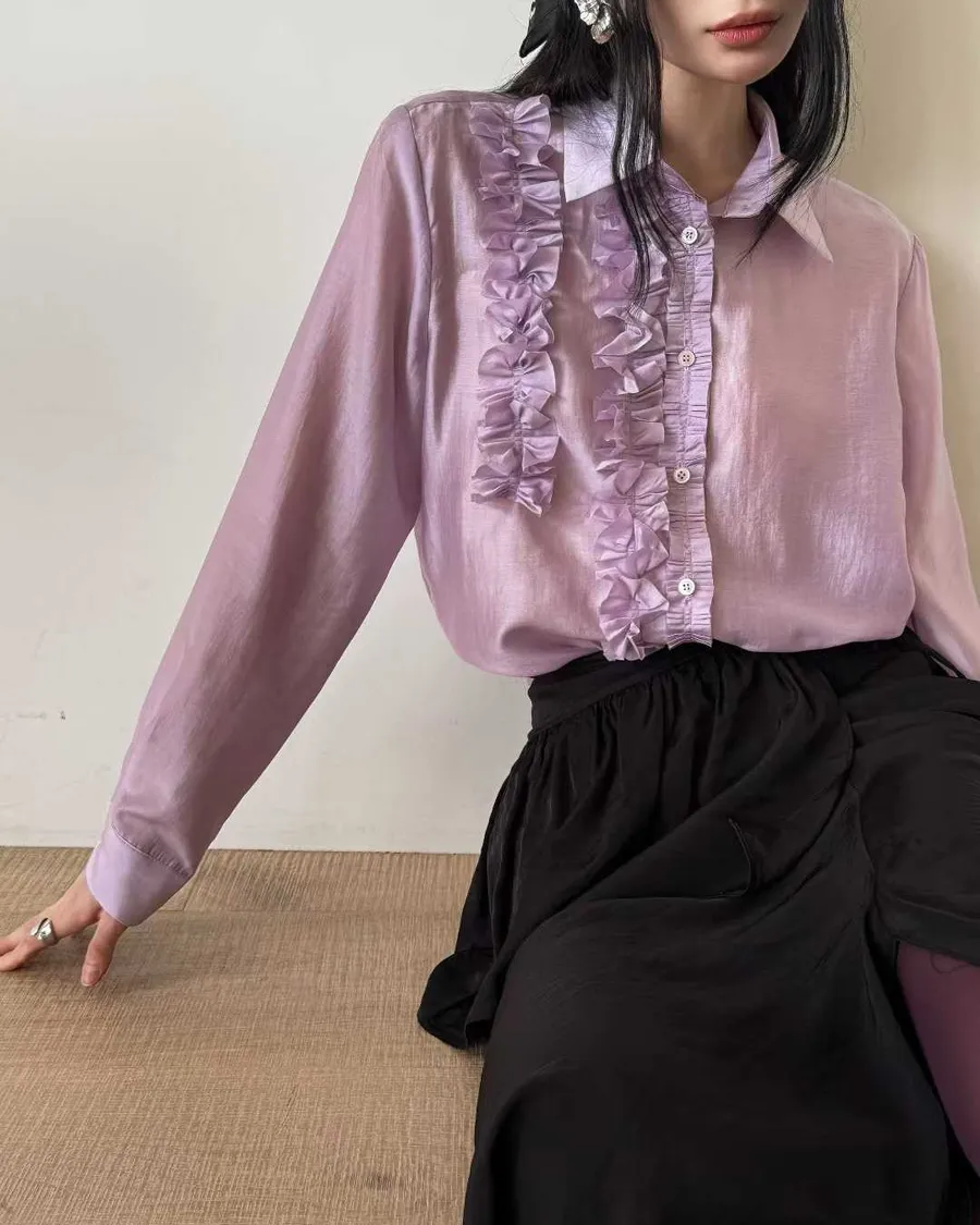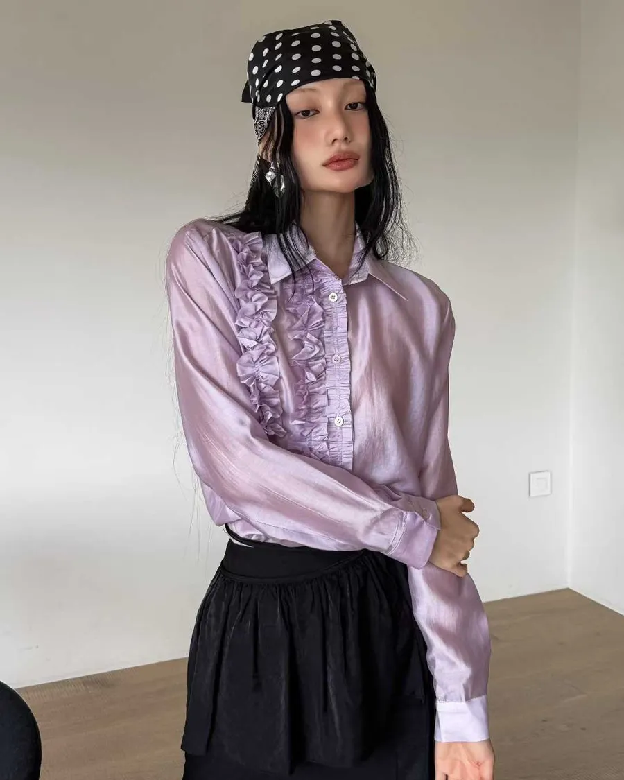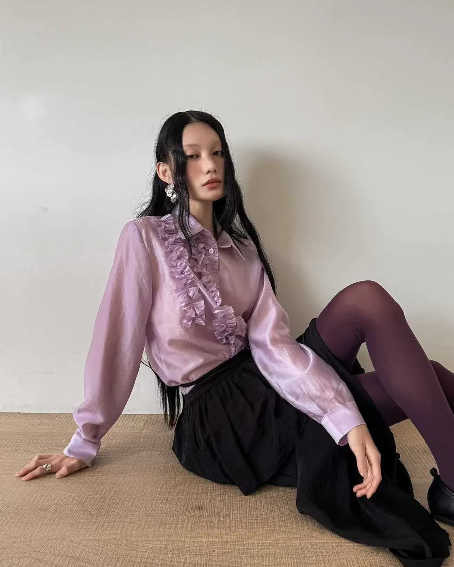 PARTYAN 韓國直送 Rosée Frill Satin Blouse|玫瑰荷葉絲緞襯衫
