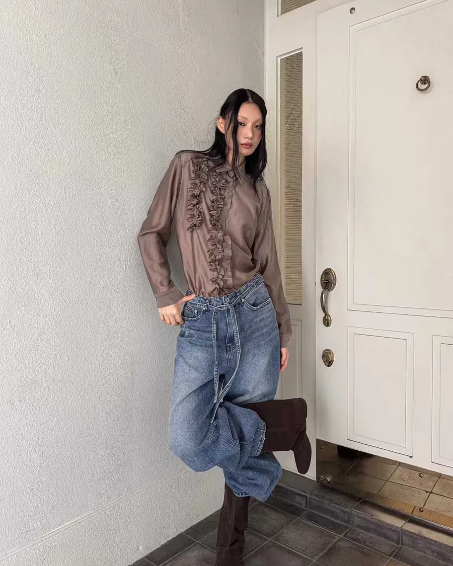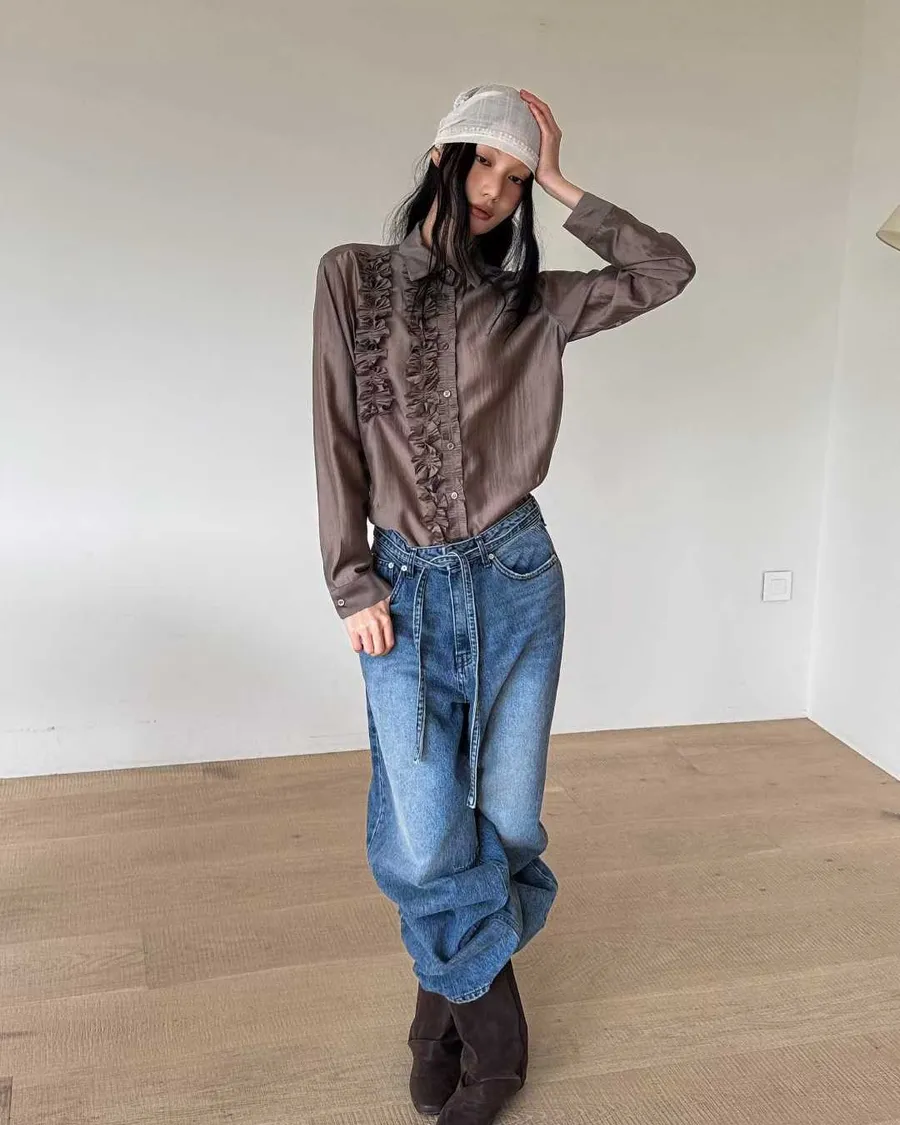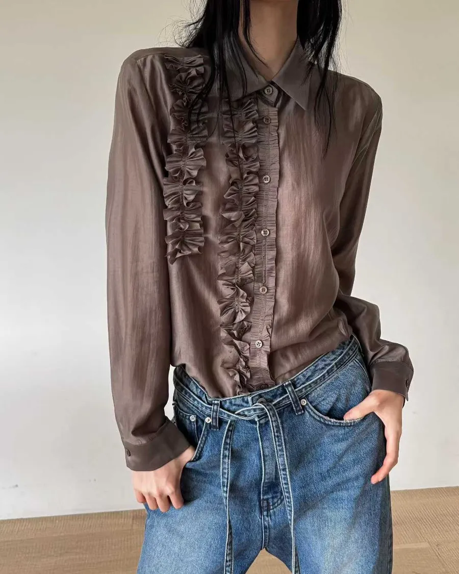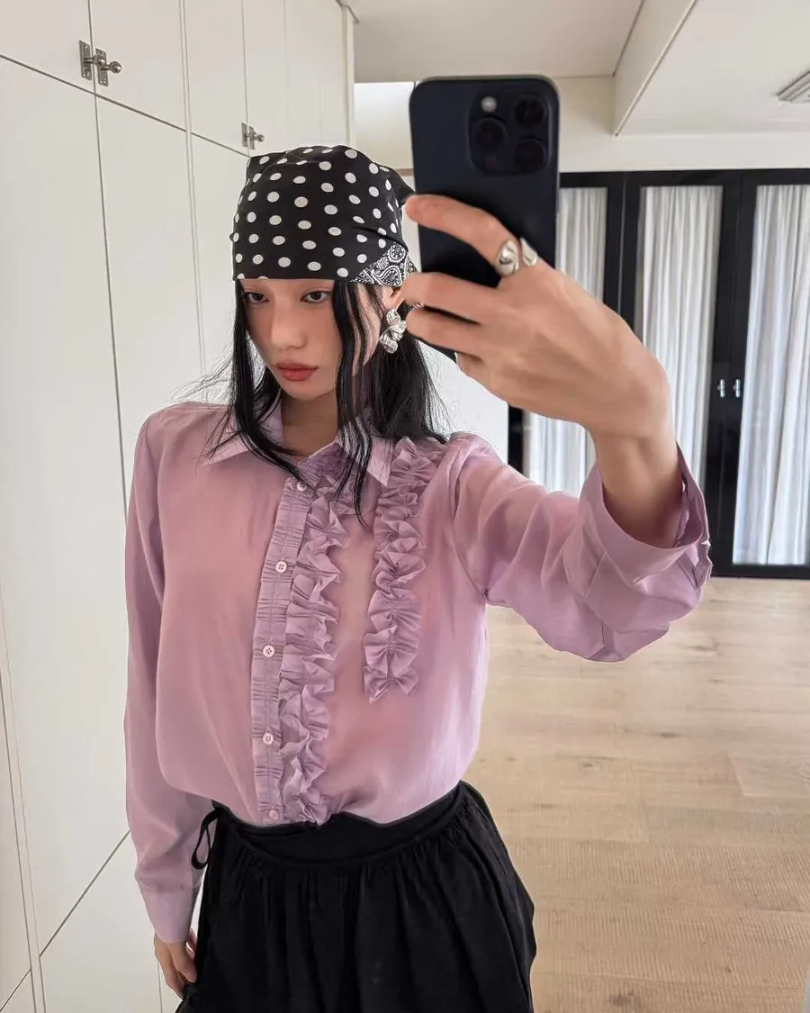 PARTYAN 韓國直送 Rosée Frill Satin Blouse|玫瑰荷葉絲緞襯衫