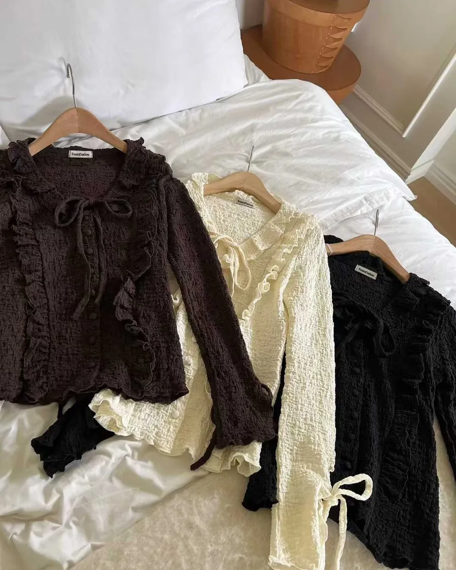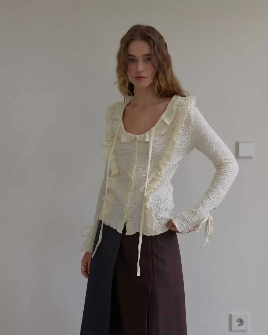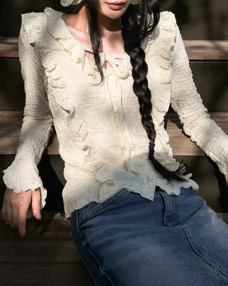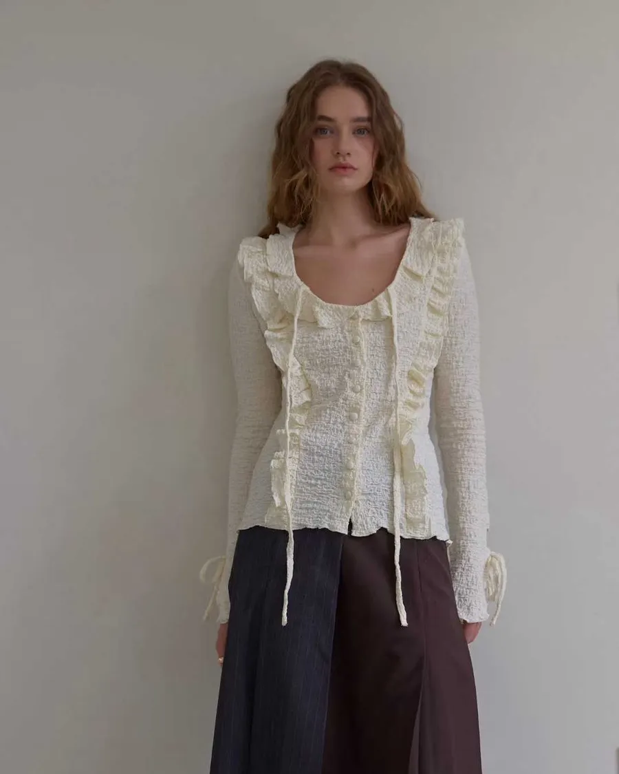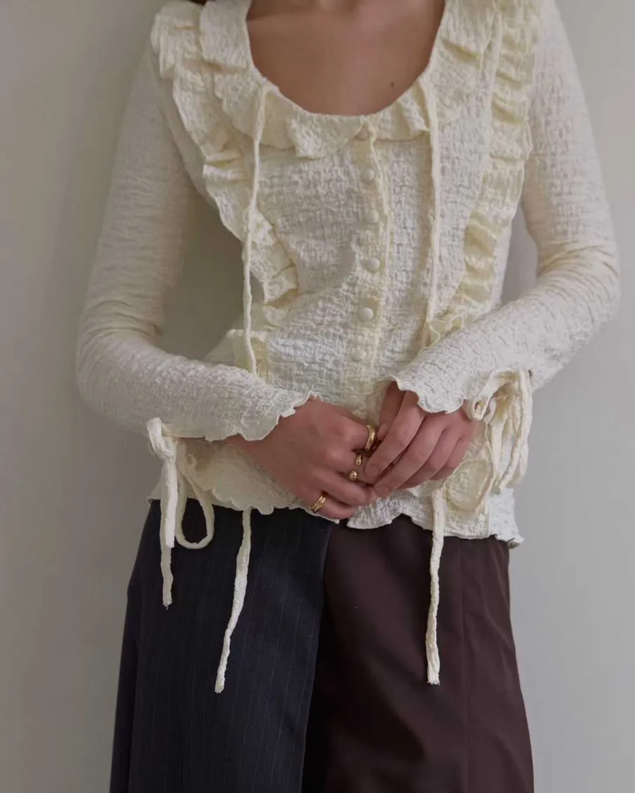 PARTYAN 韓國直送 Aurora Ruffle Crinkle Blouse|極光荷葉壓摺襯衫