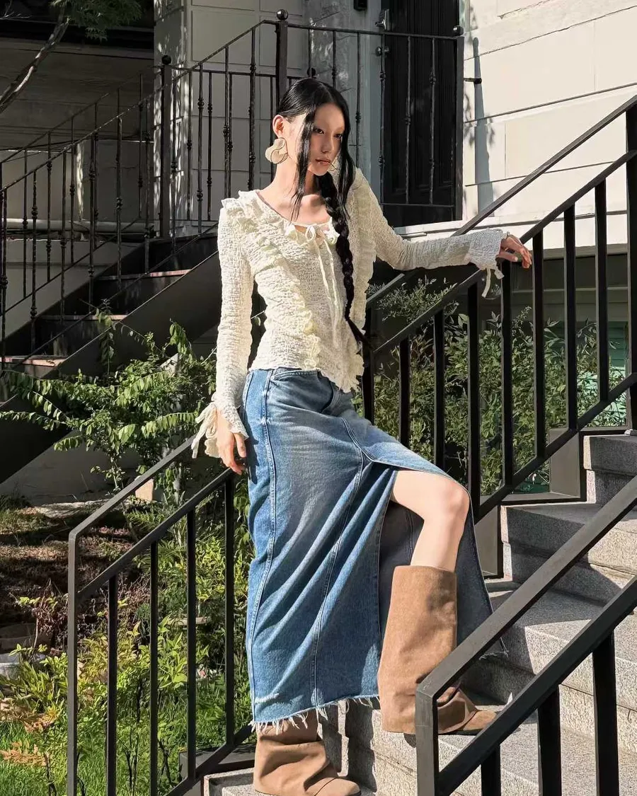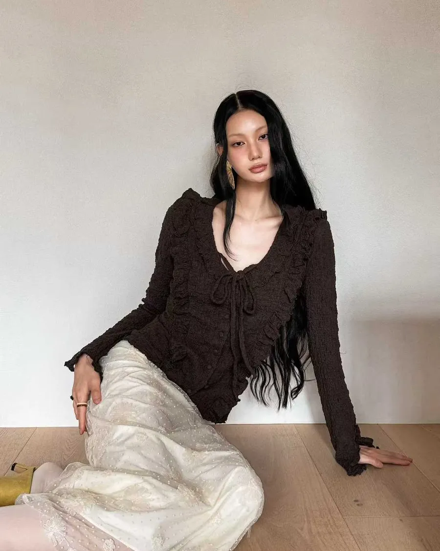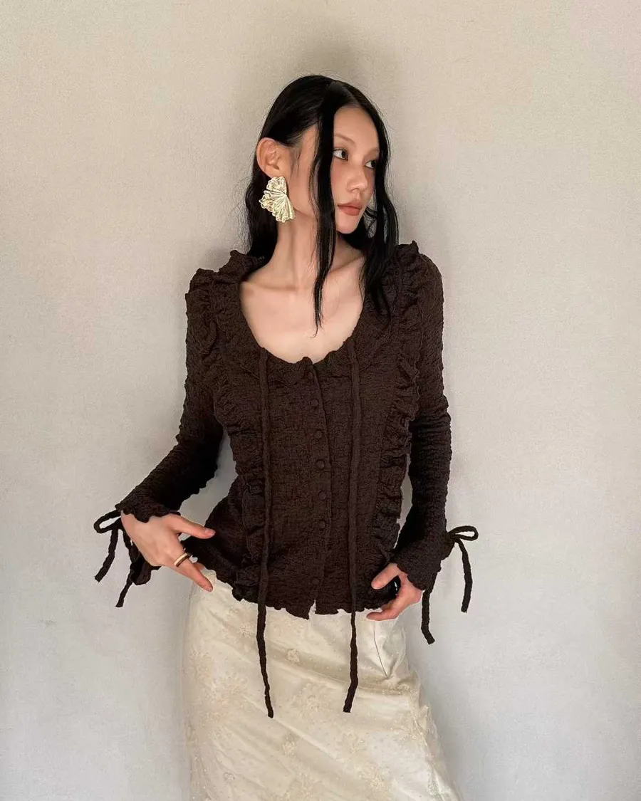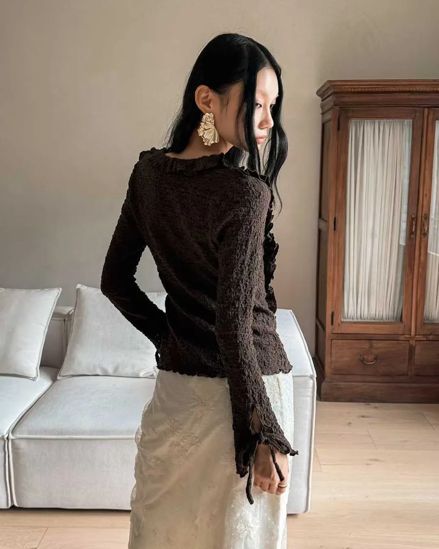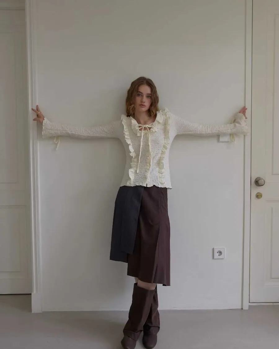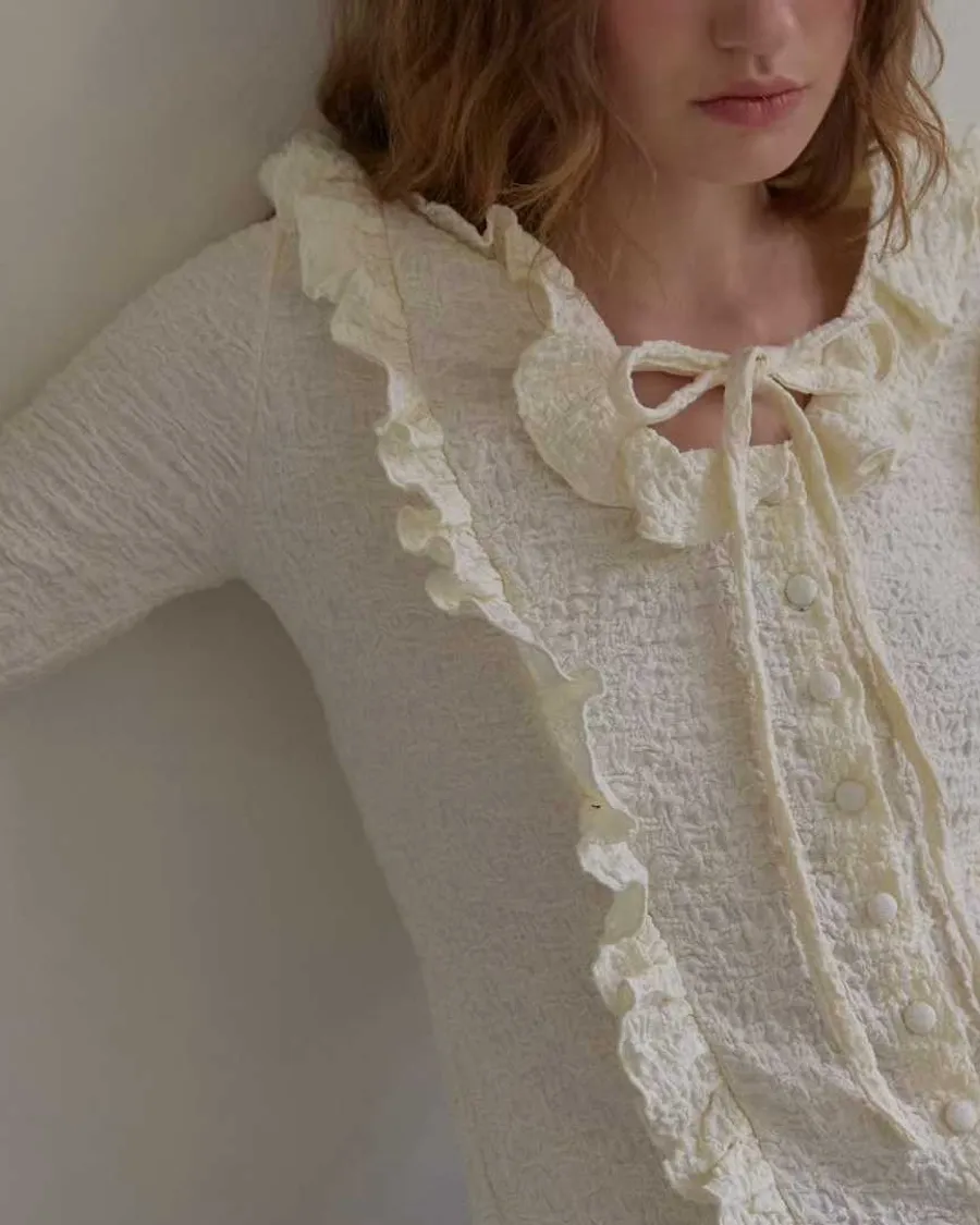 PARTYAN 韓國直送 Aurora Ruffle Crinkle Blouse|極光荷葉壓摺襯衫