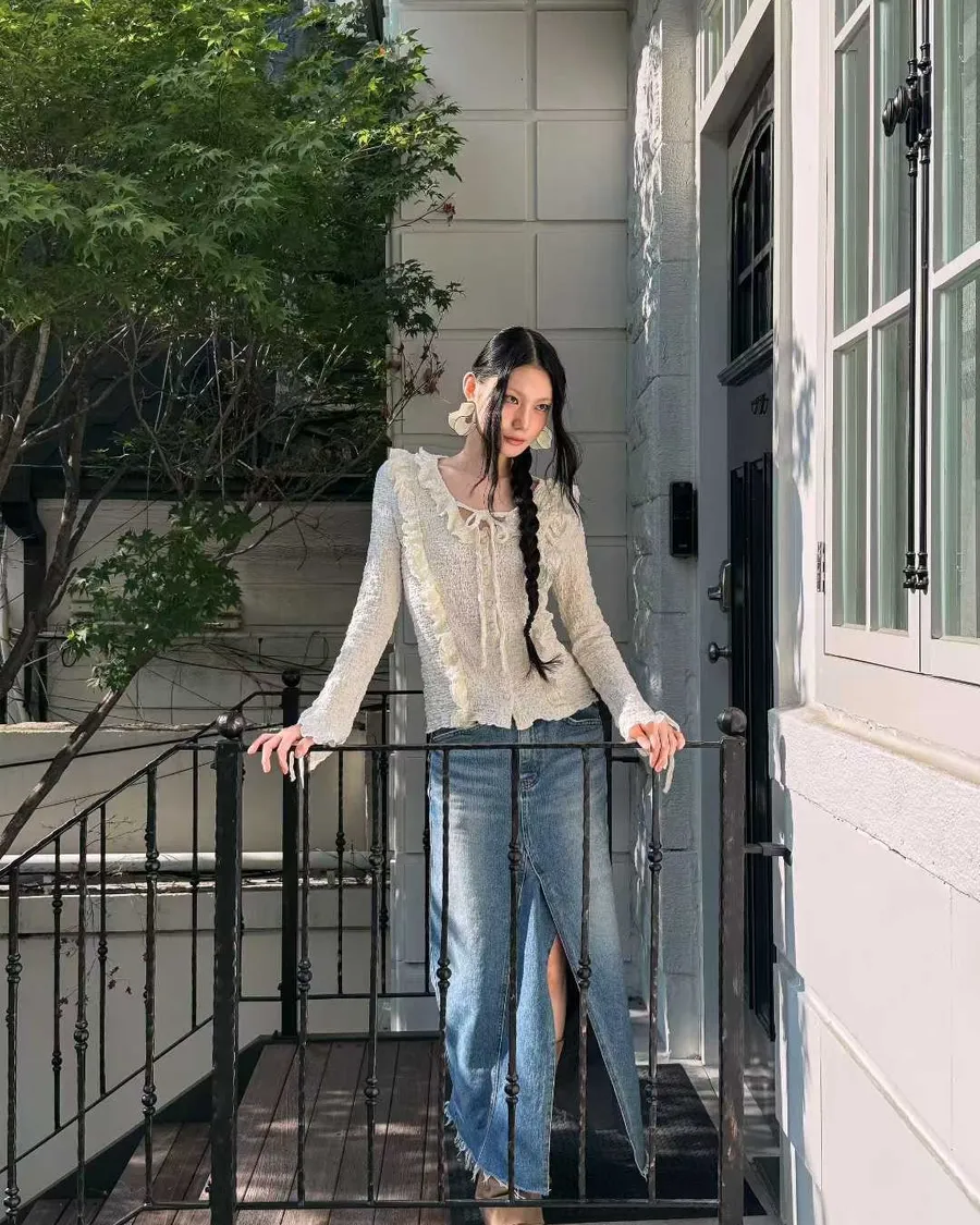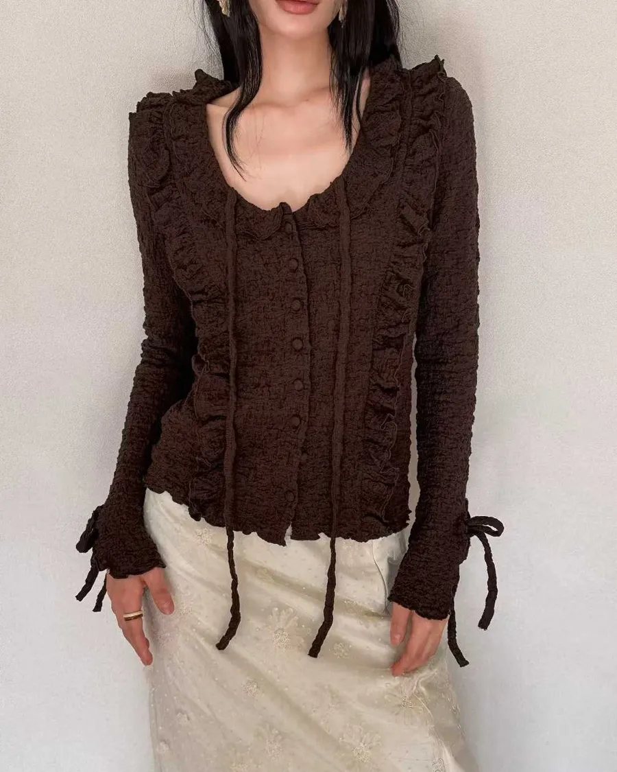前襟荷葉邊+蝴蝶結綁帶,甜美精緻