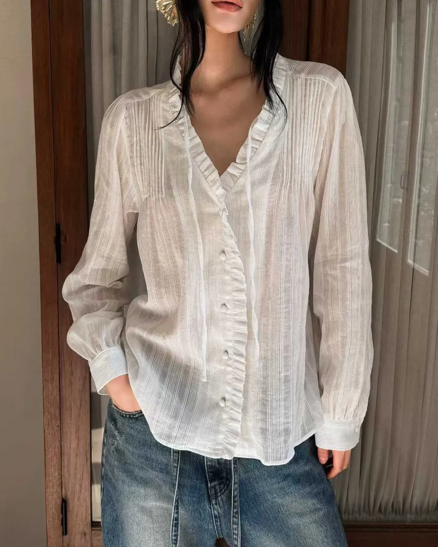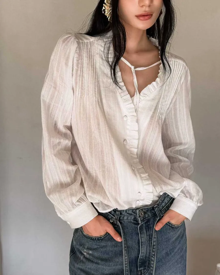 PARTYAN 韓國直送 Maison Liora Pintuck Lace Blouse|高定款 莉婭立體蕾絲 pintuck 襯衫