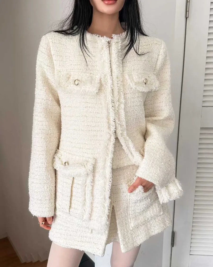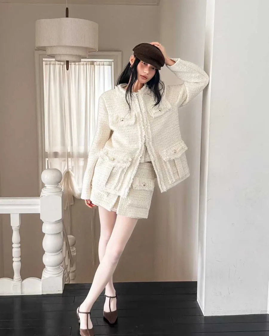 經典粗花呢紋理:自帶法式高級氛圍,精緻耐看。