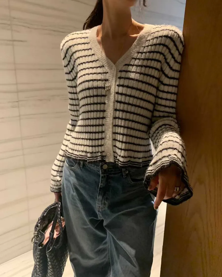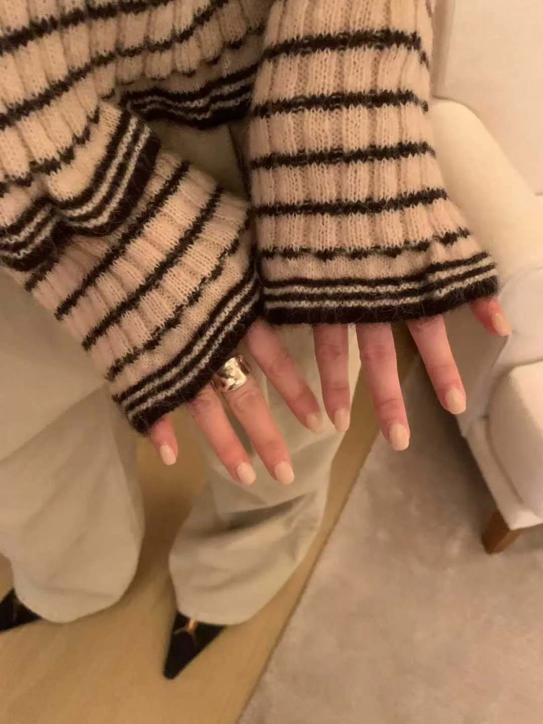 像奶泡一樣柔軟的條紋毛衣,為秋冬的每個早晨,添一點溫柔的氣息。