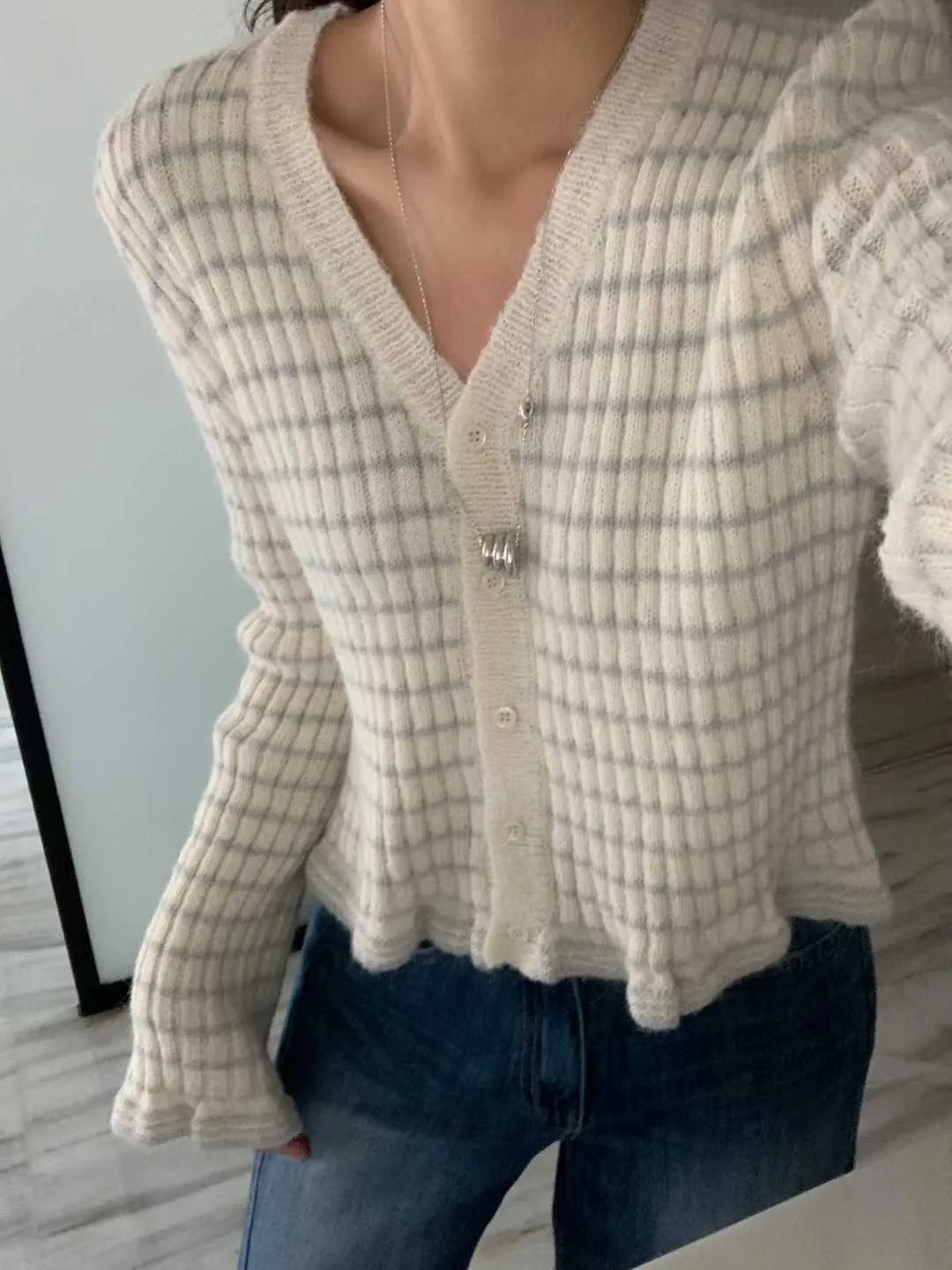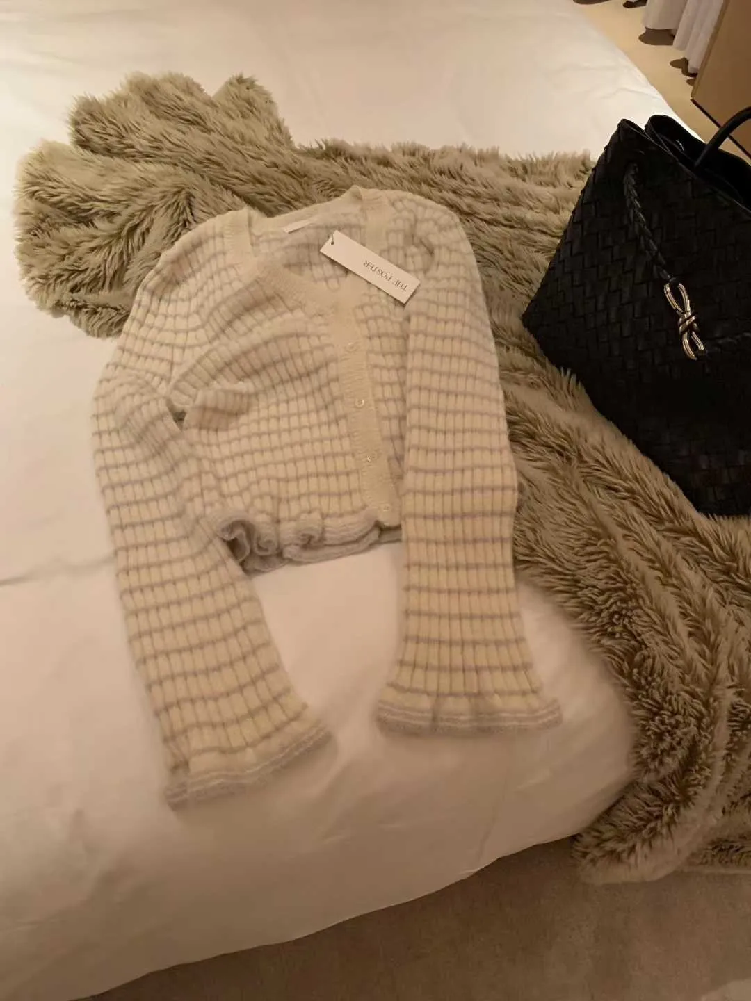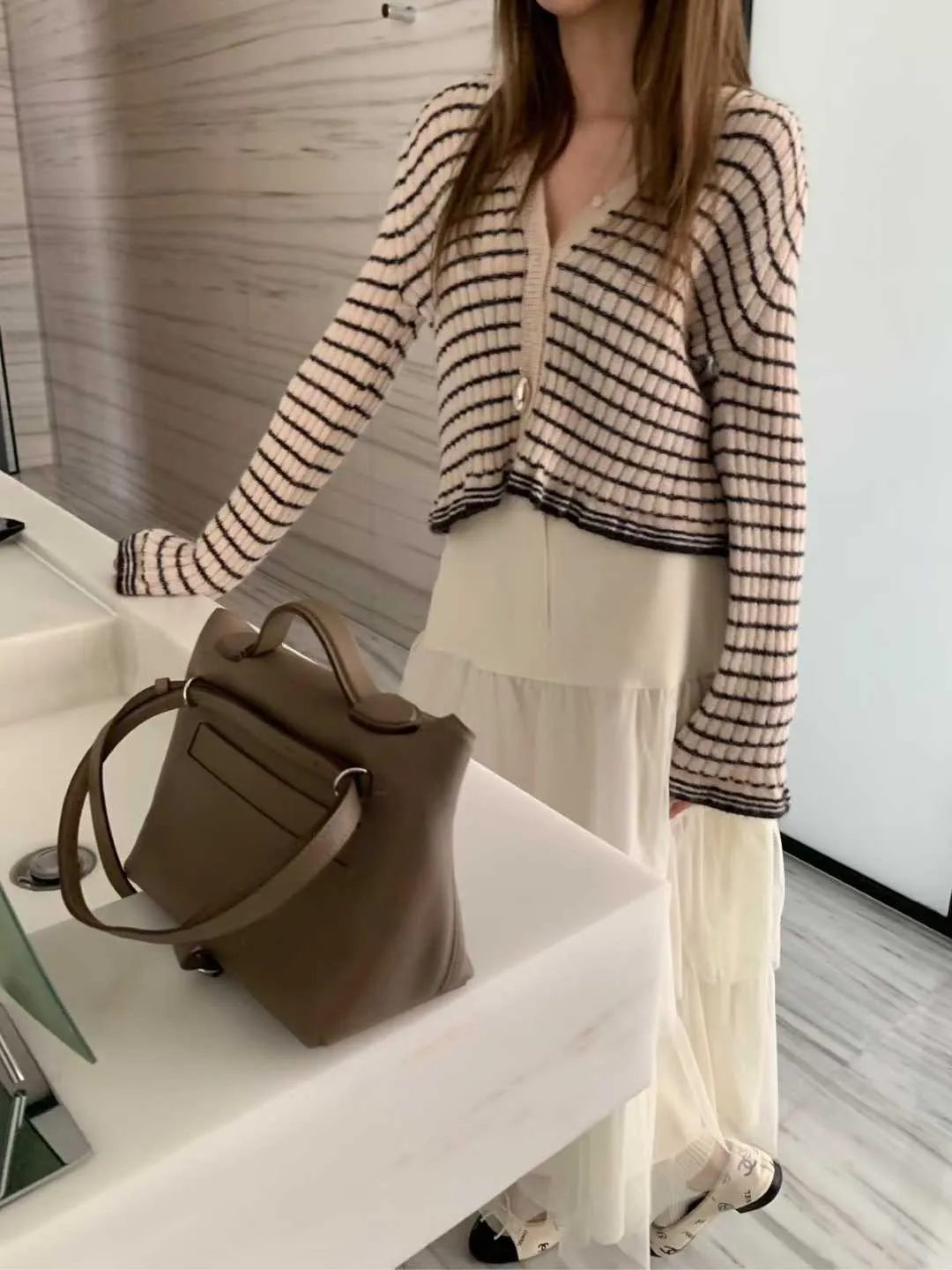 條紋色塊編織,帶有復古與韓系感的平衡溫度。
