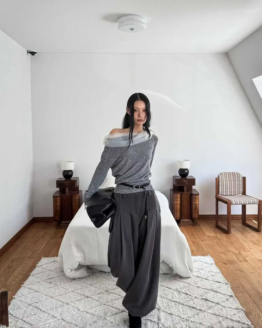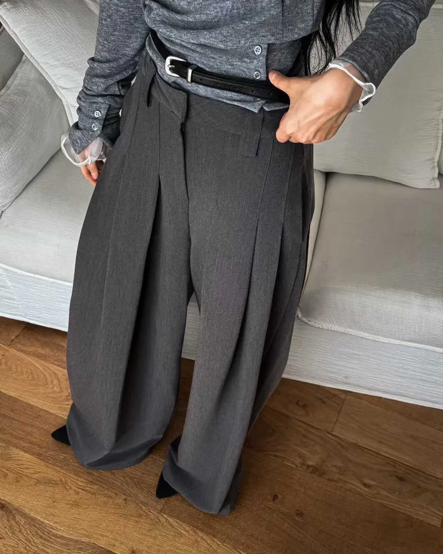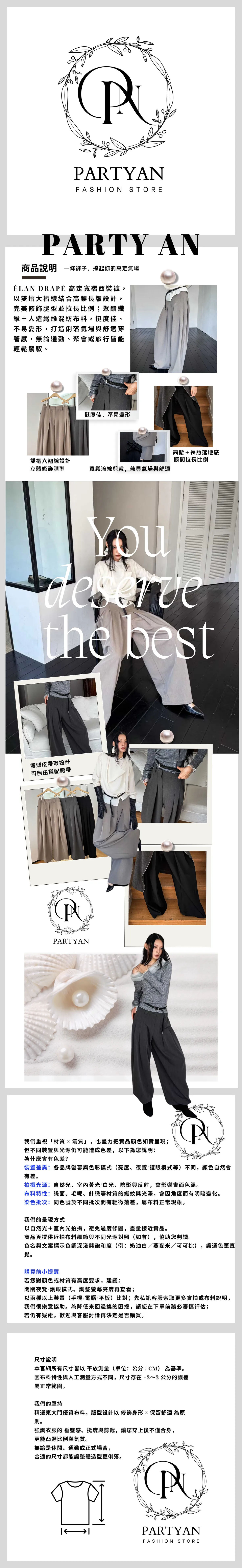 PARTYAN 韓國直送 Élan Drapé 高定寬褶西裝褲