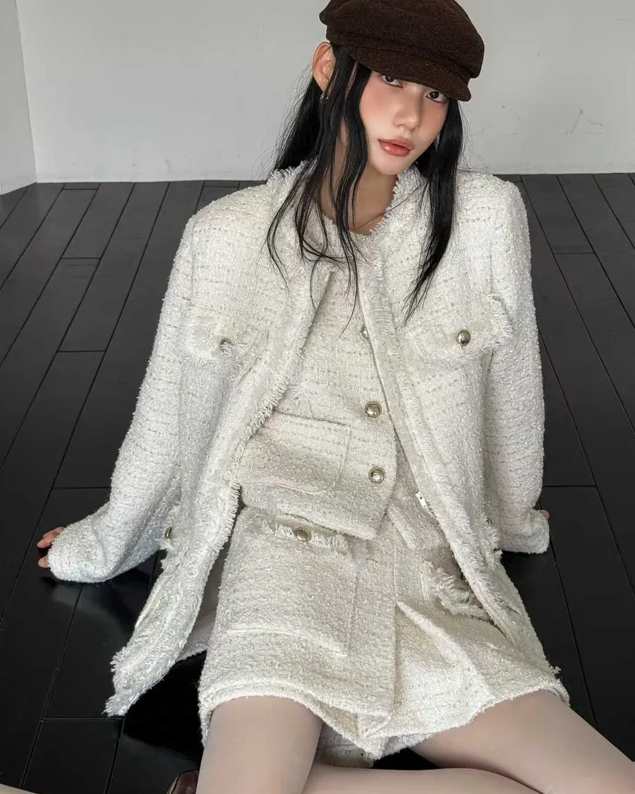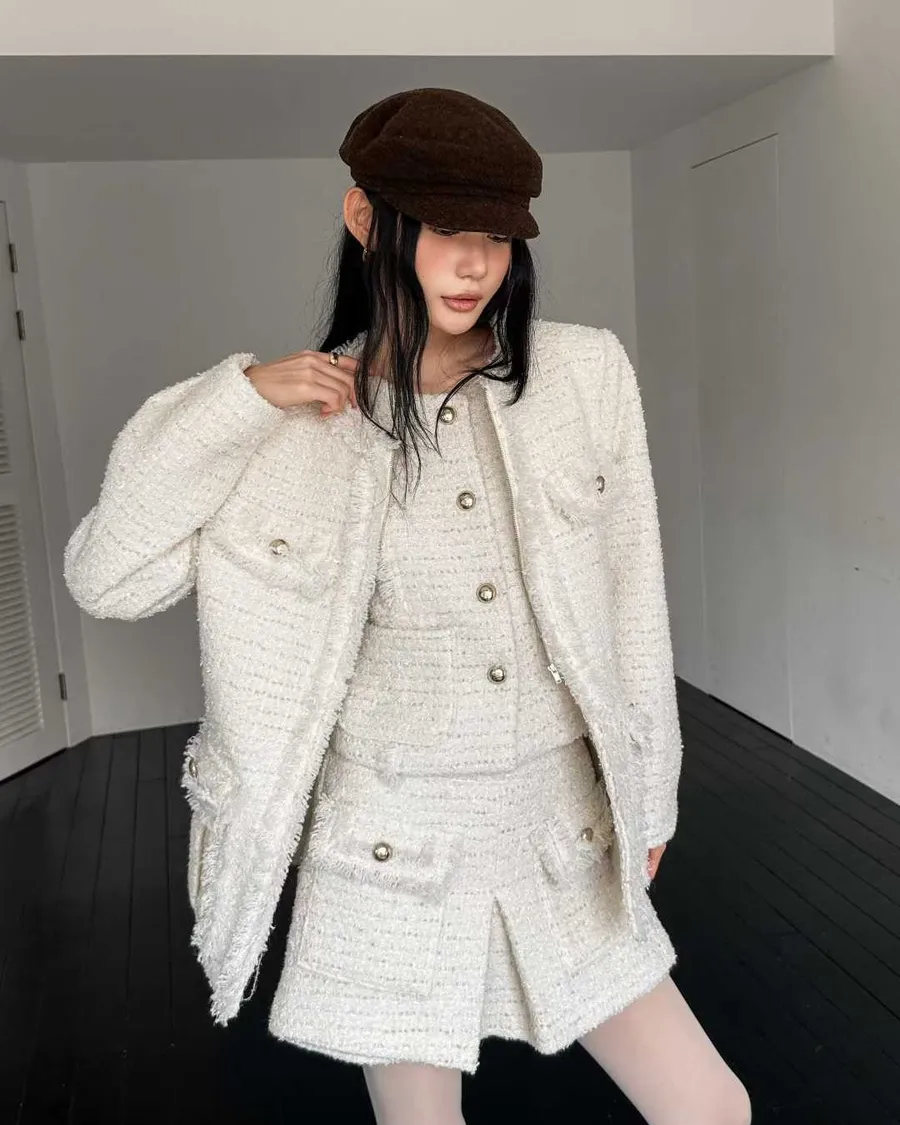 - 粗花呢立體肌理,帶出奢華復古氛圍