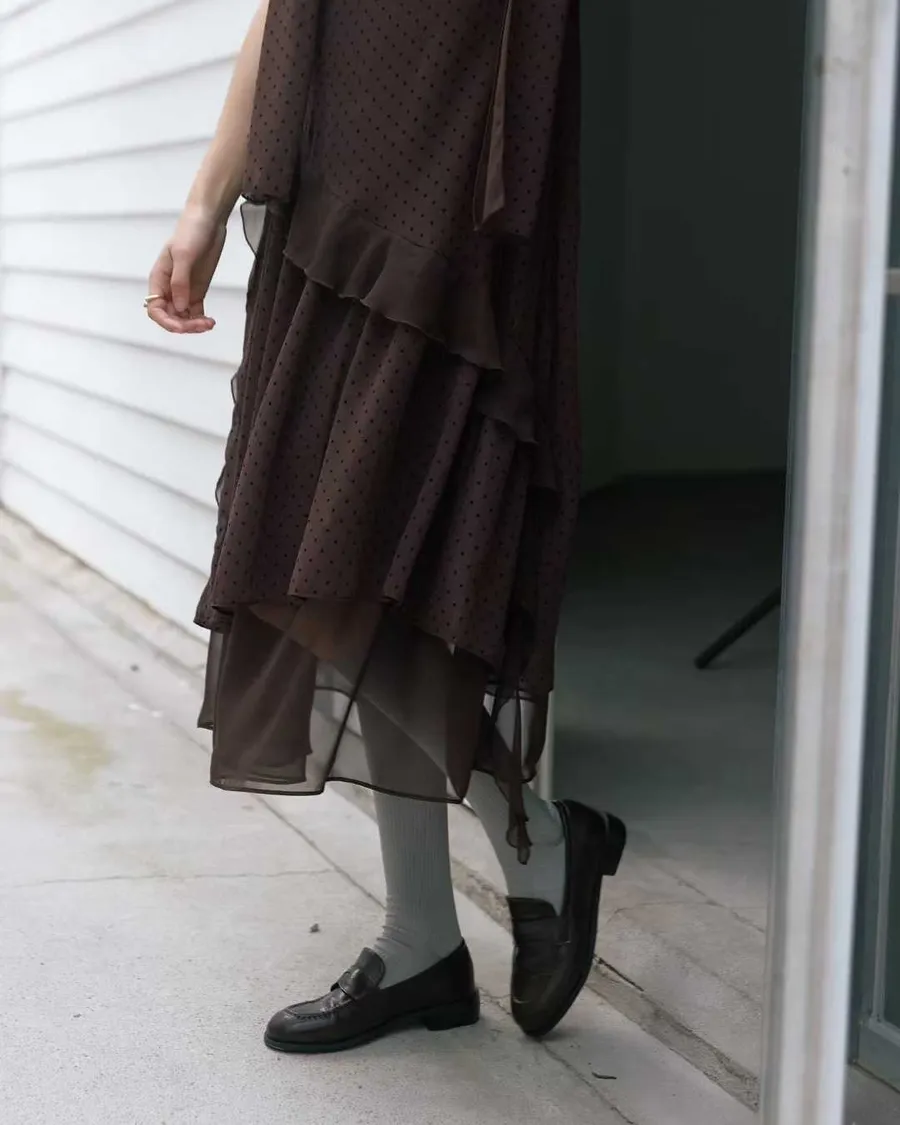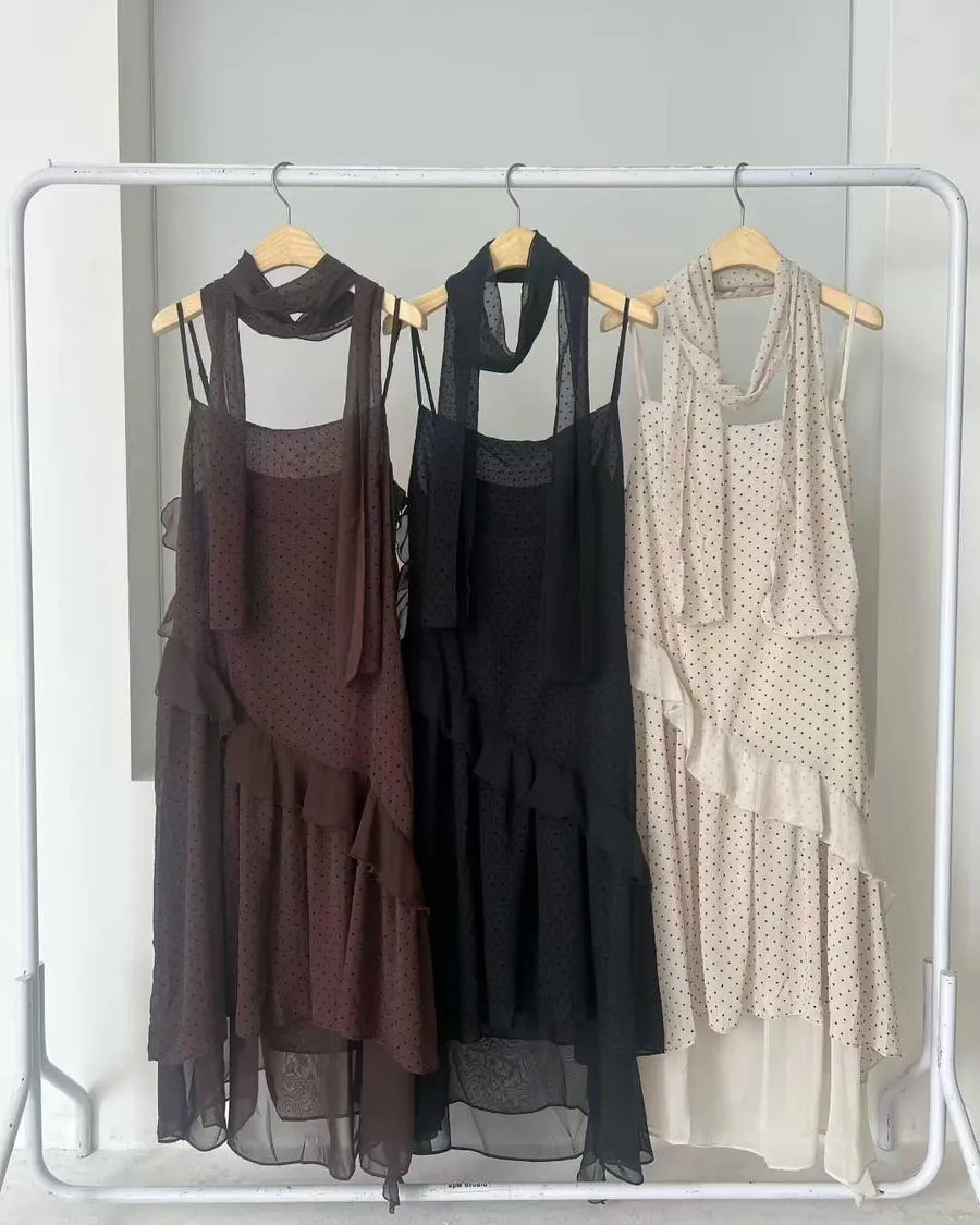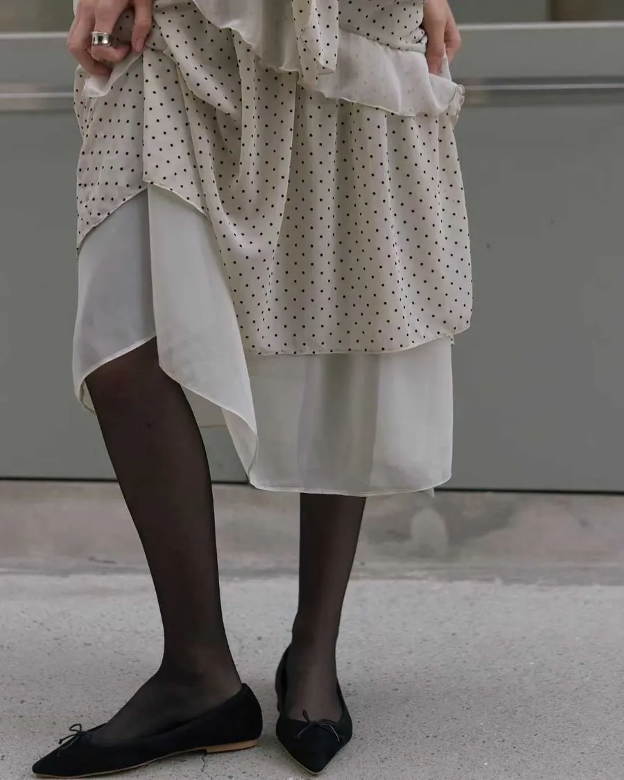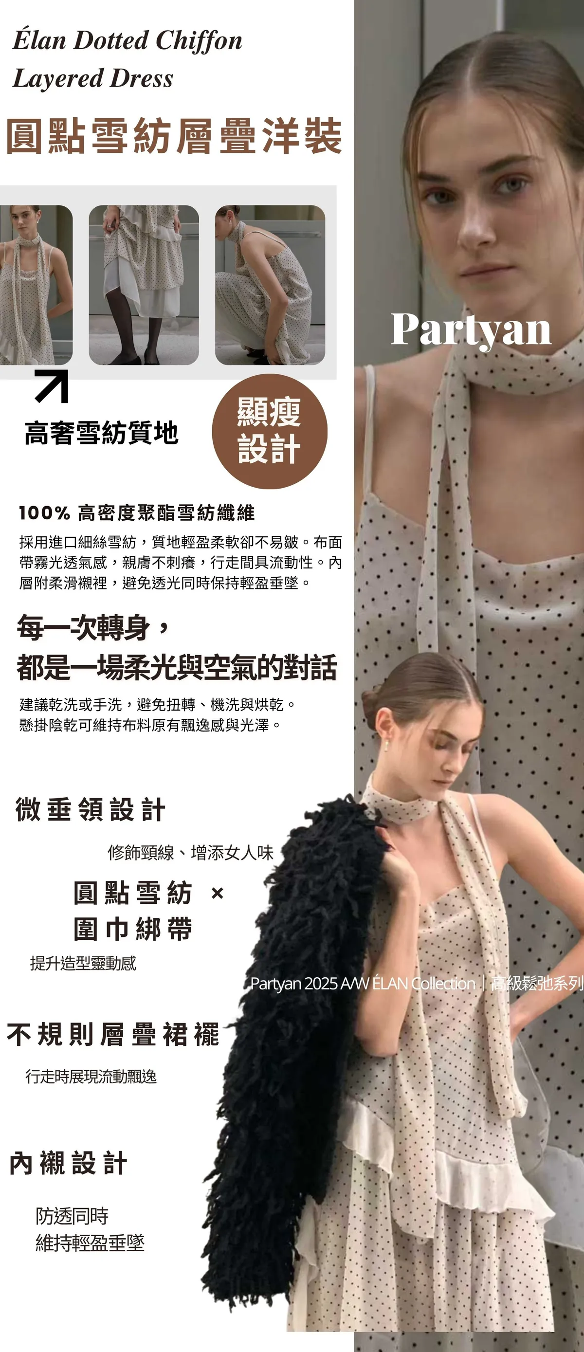 PARTYAN 韓國直送 Élan Dotted Chiffon Layered Dress|圓點雪紡層疊連身洋裝