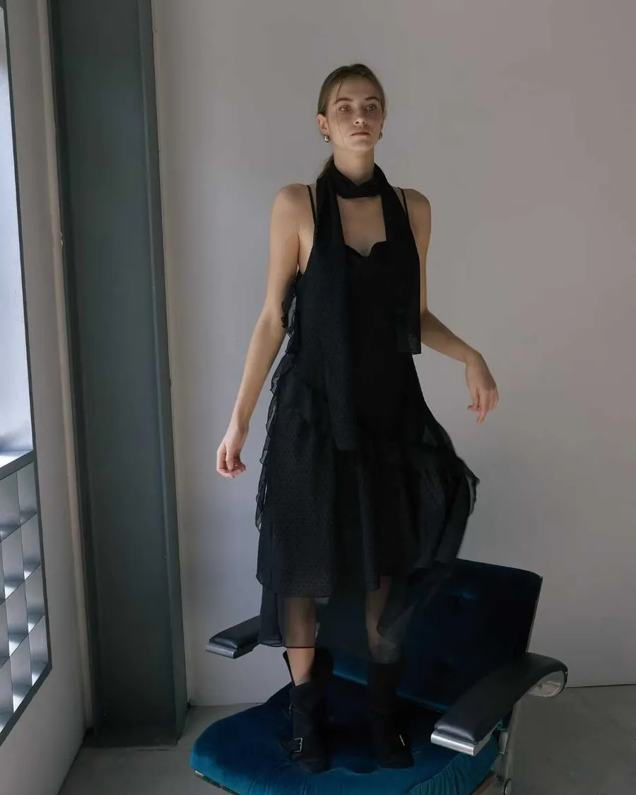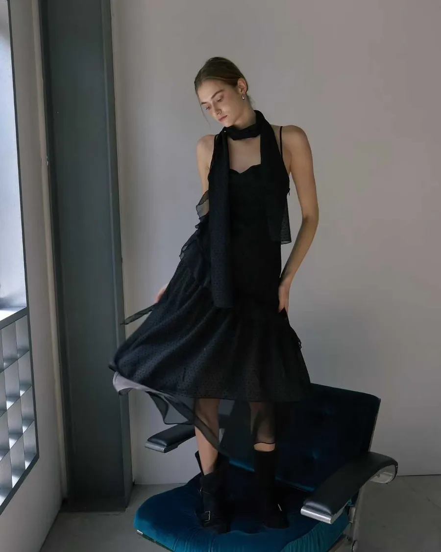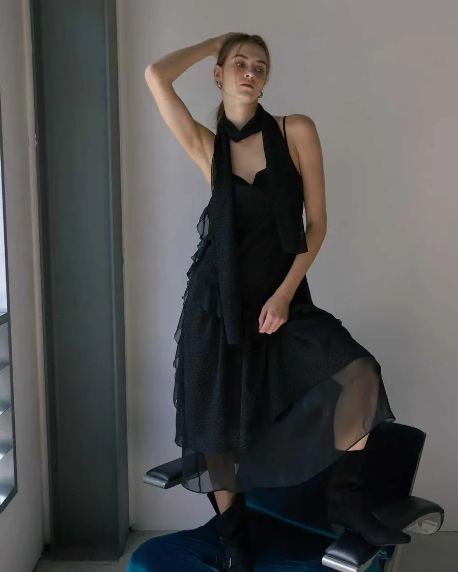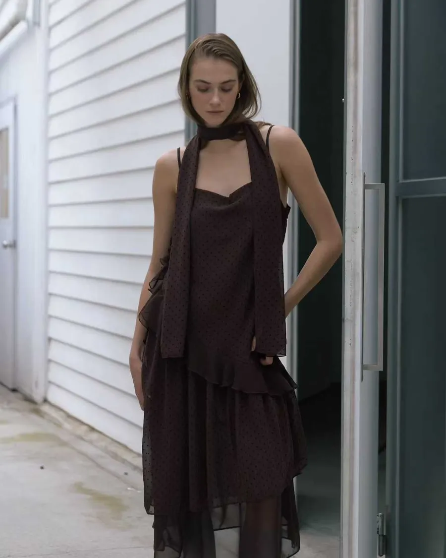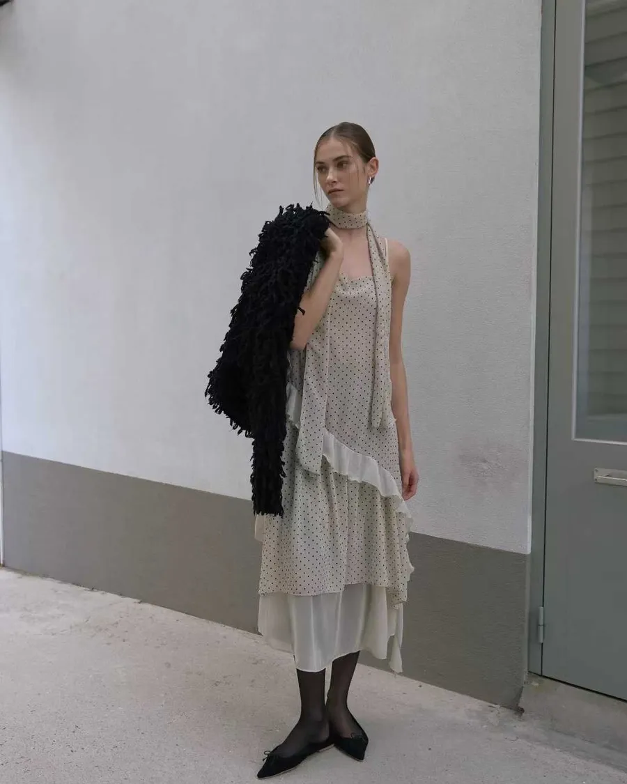 PARTYAN 韓國直送 Élan Dotted Chiffon Layered Dress|圓點雪紡層疊連身洋裝