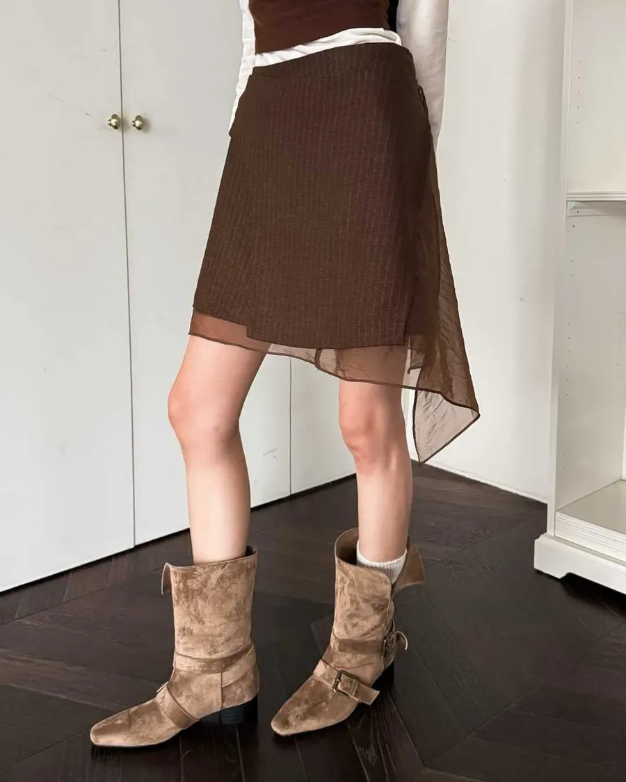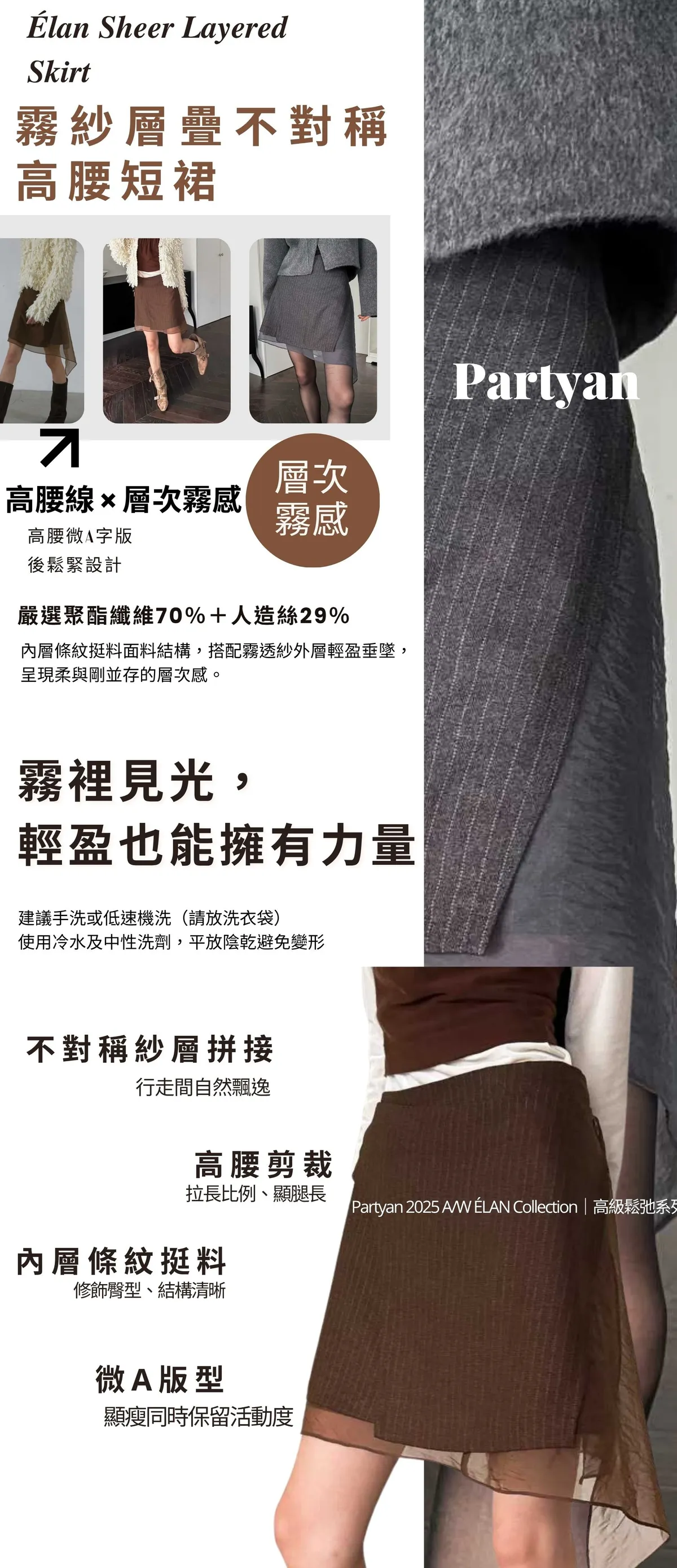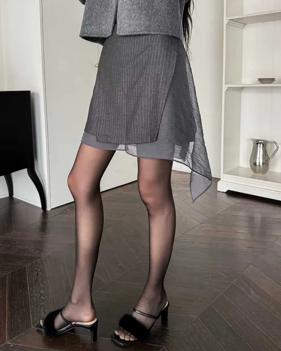 PARTYAN 韓國直送 Élan Sheer Layered Skirt|霧紗層疊不對稱高腰短裙