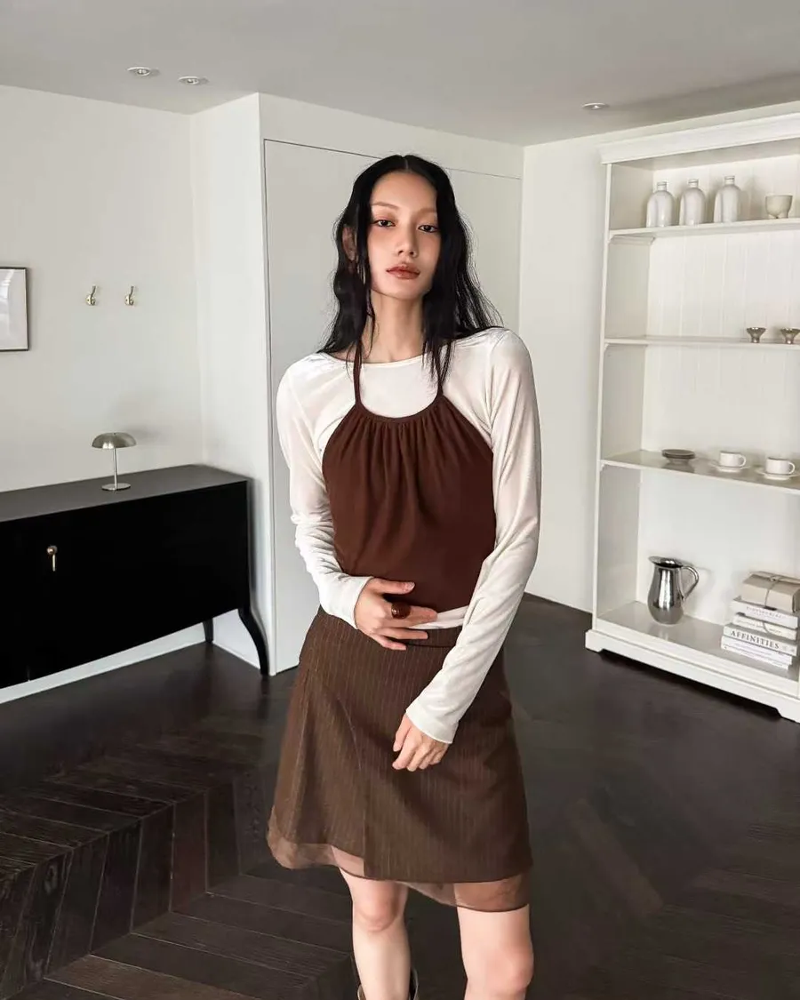 高腰剪裁修飾比例、不對稱裙襬隨步飄逸,