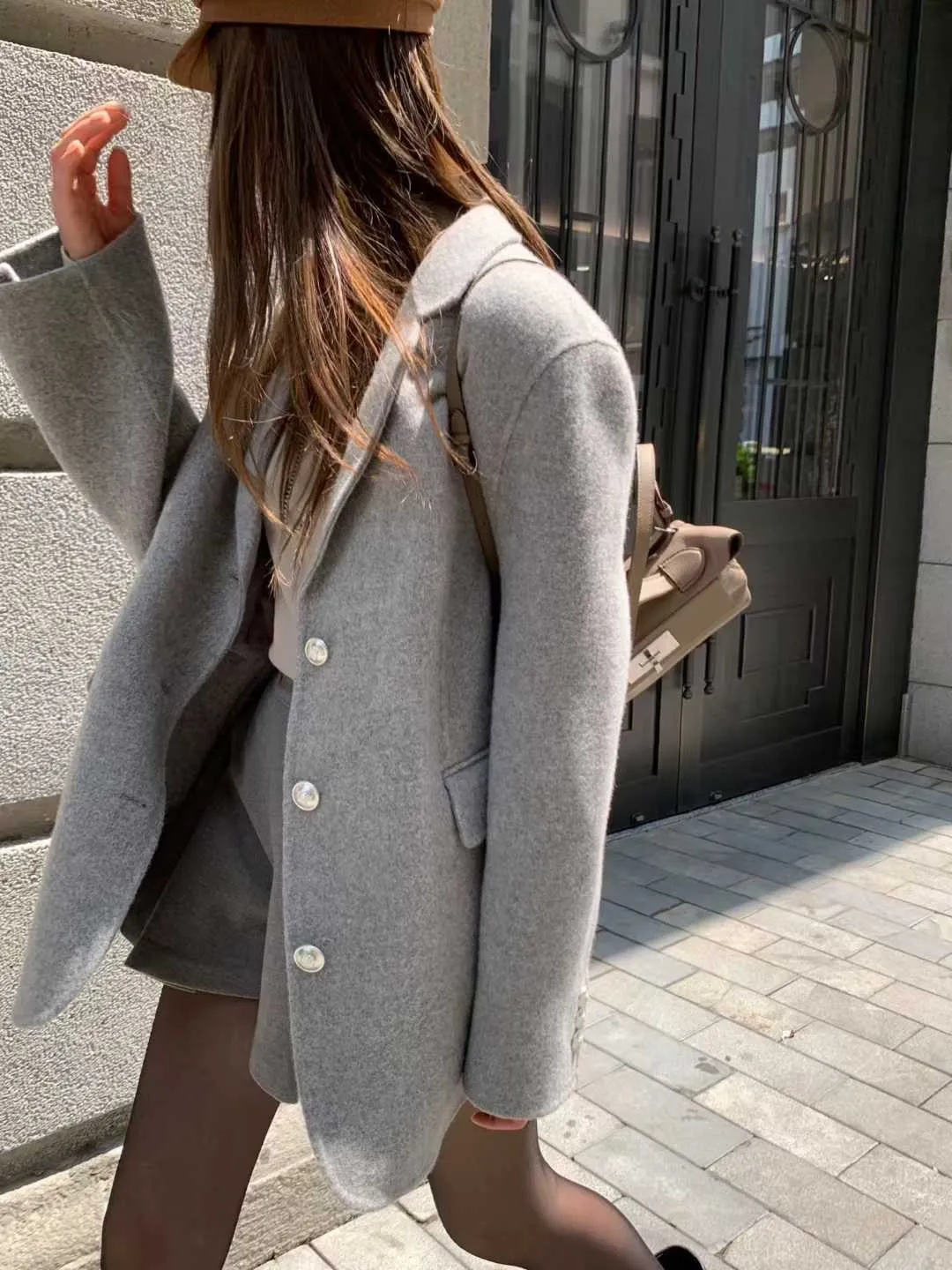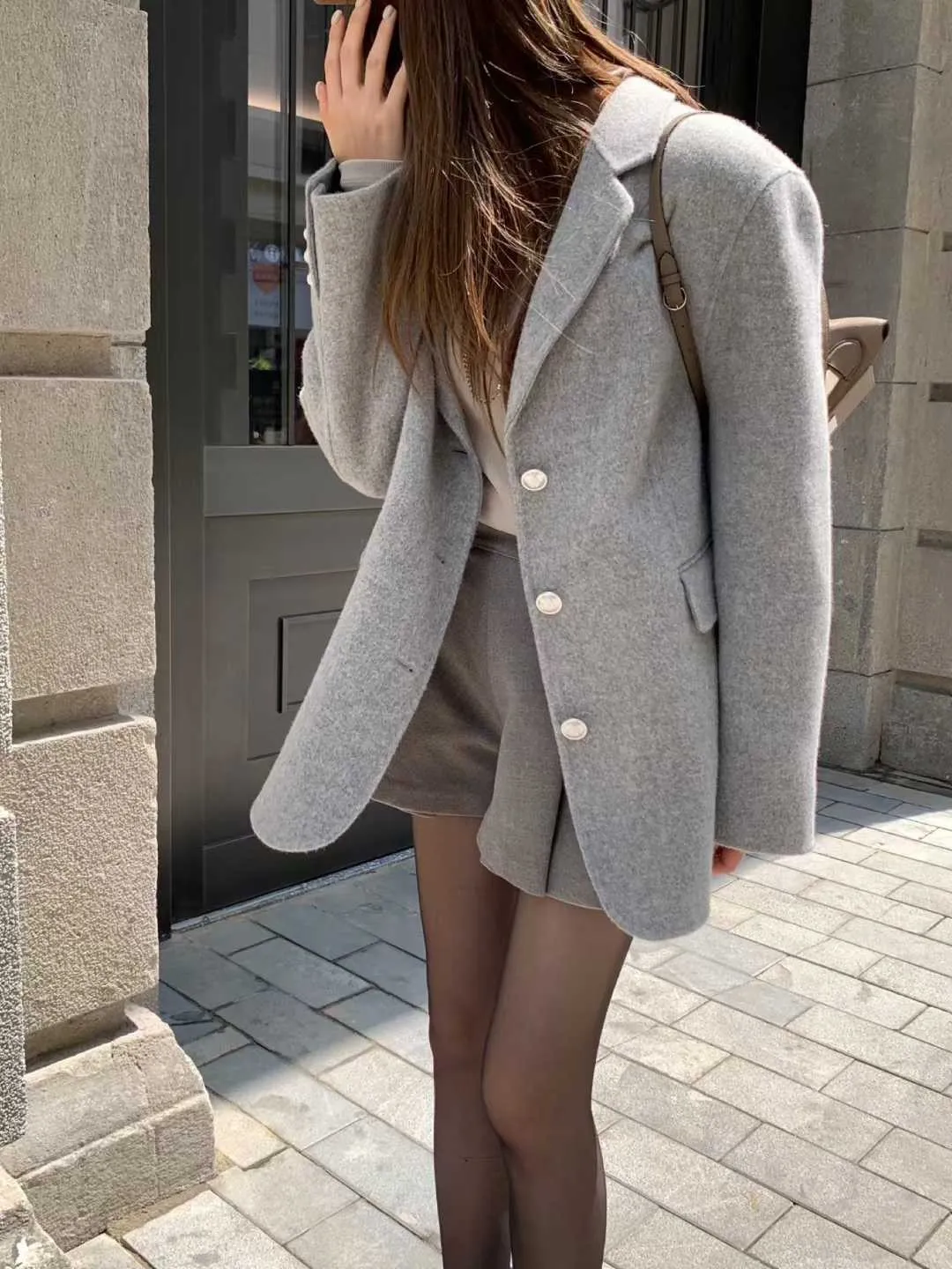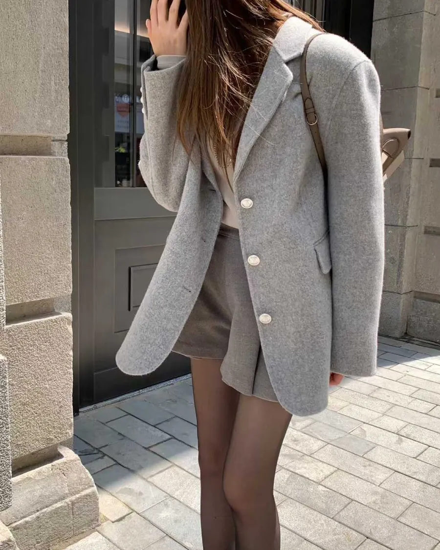 「柔霧光澤下的俐落剪裁,讓溫柔與氣場並存。」