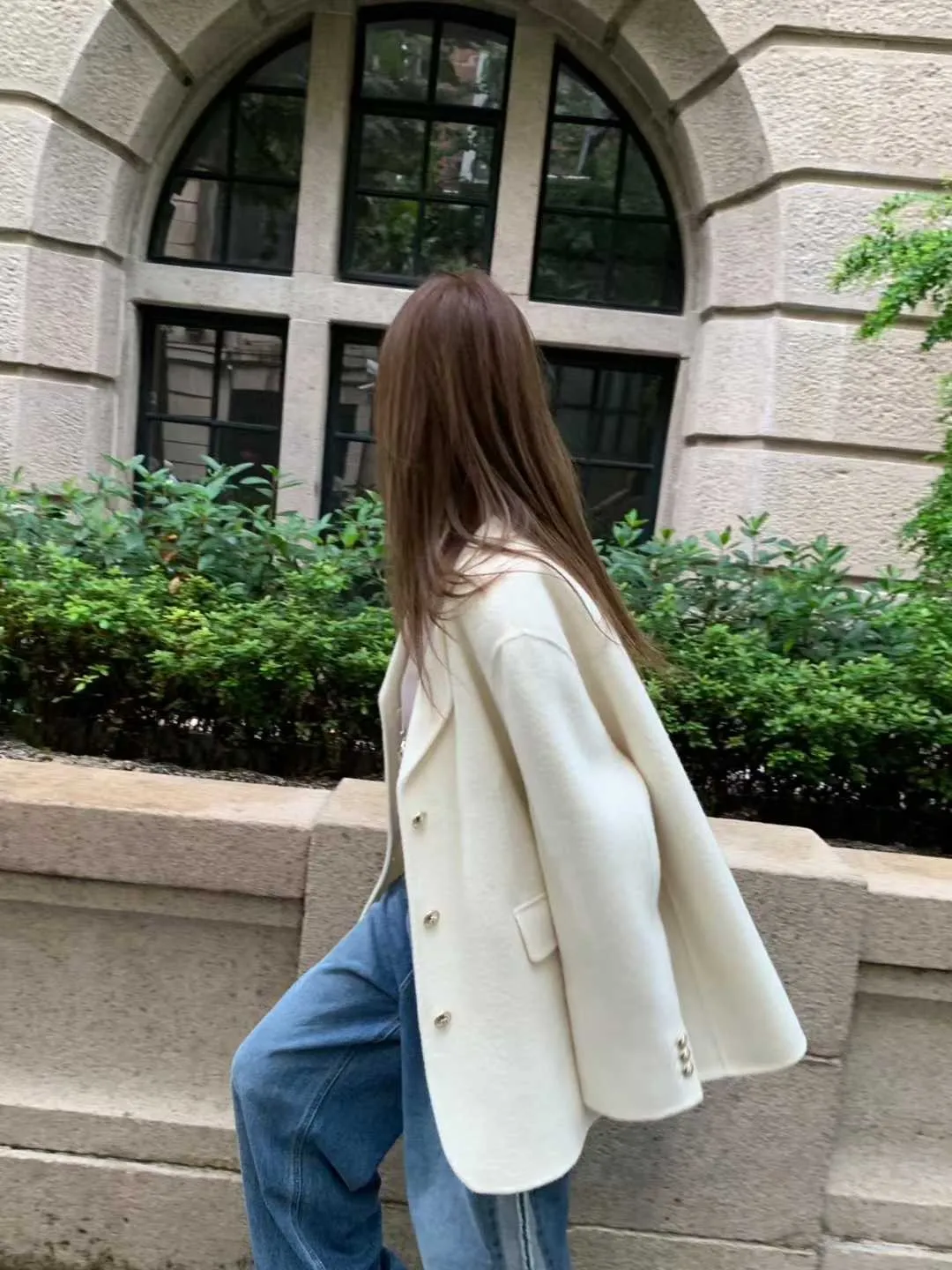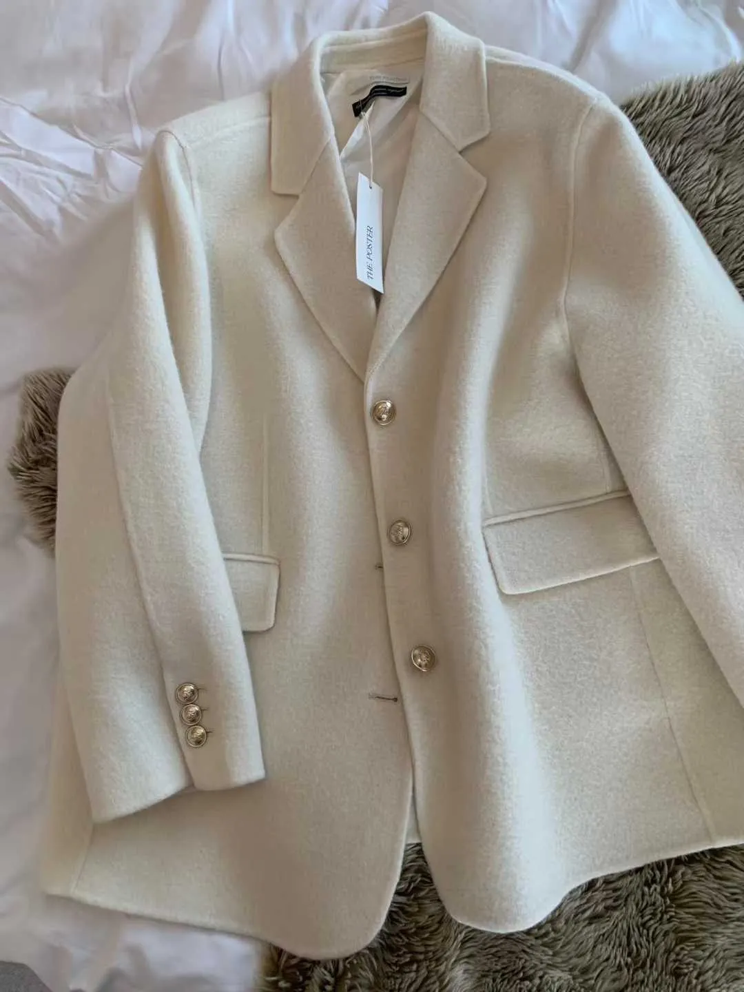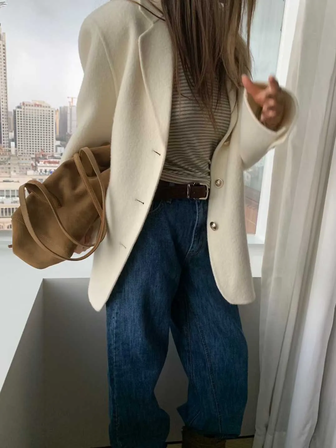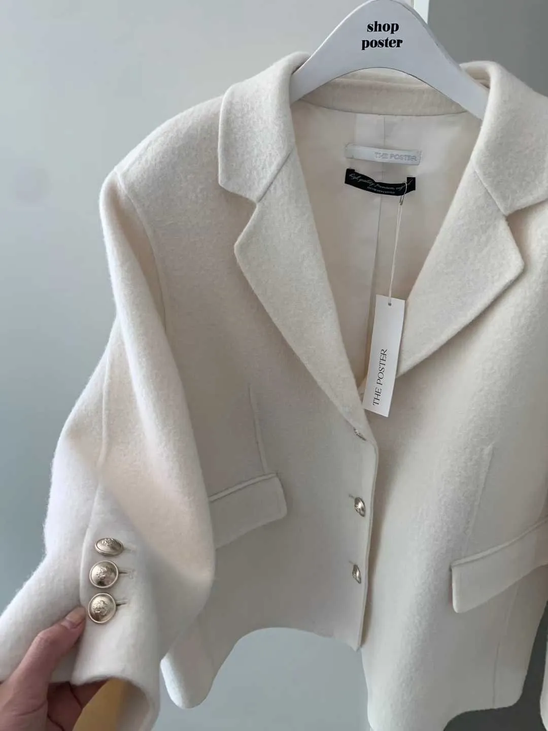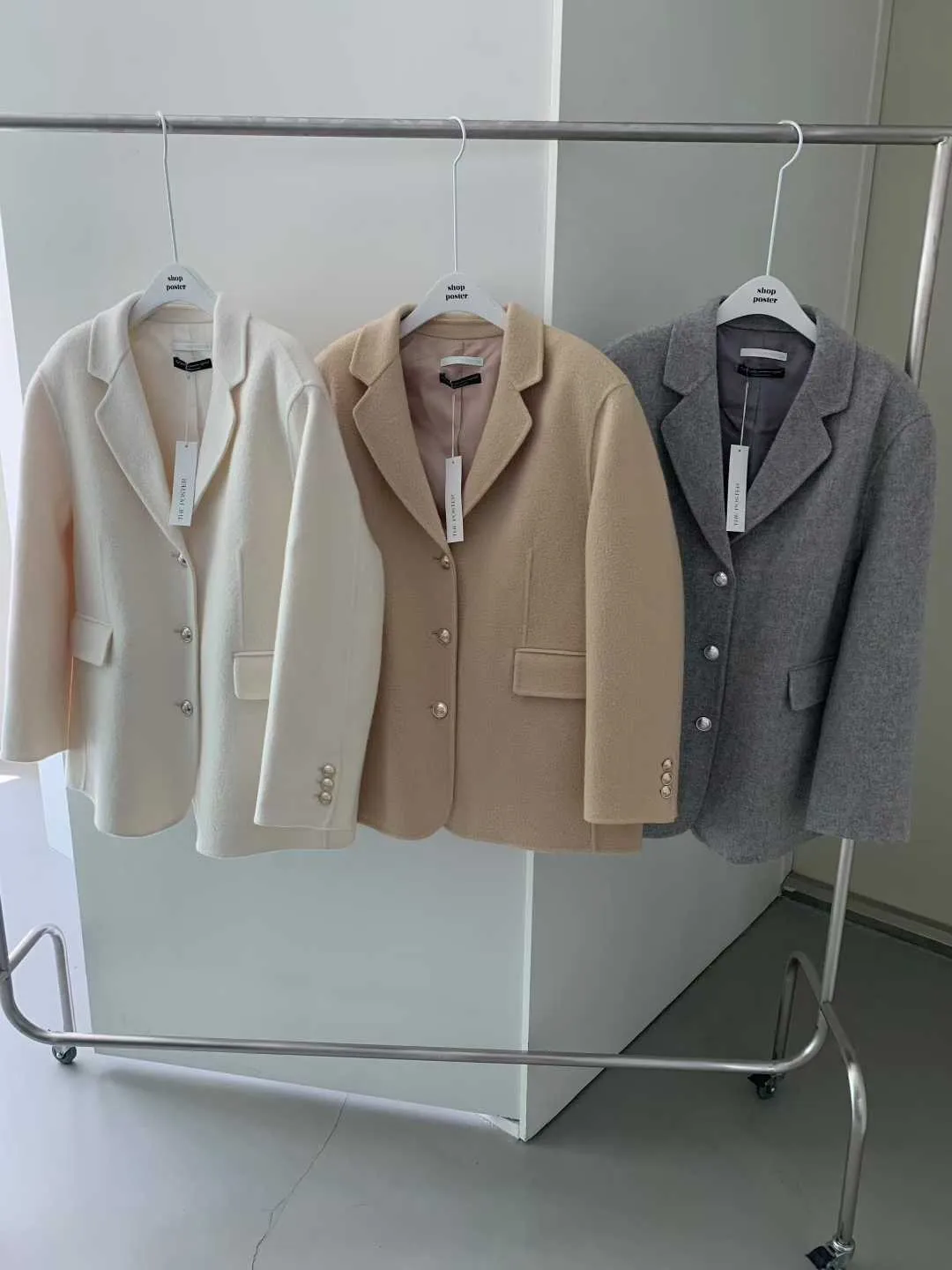 簡約西裝領結構 × 立體公主線剪裁,修飾上半身比例。