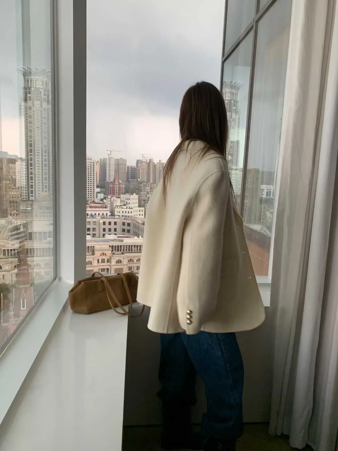 微寬肩線搭配中長版弧度,下擺自然收斂不厚重。