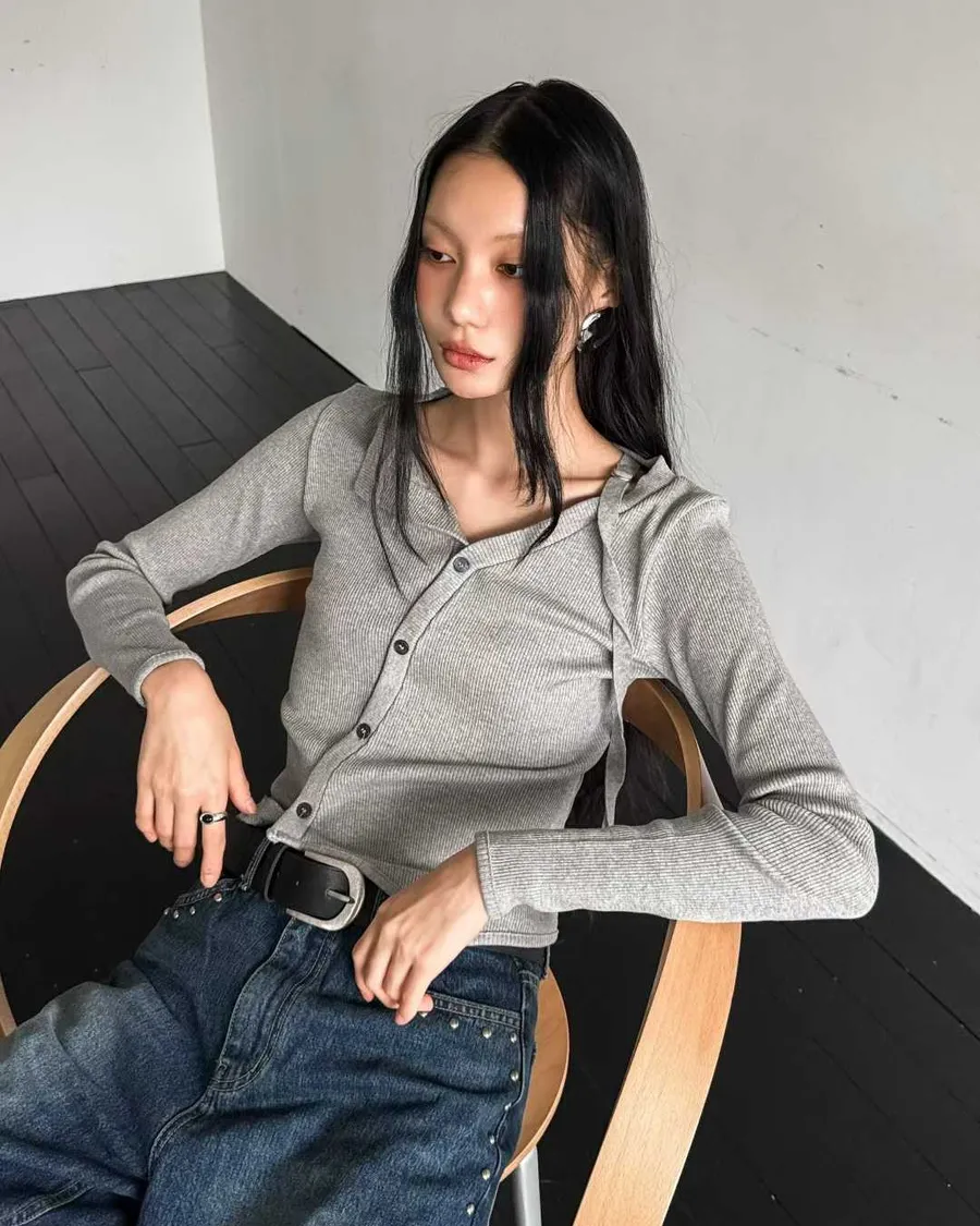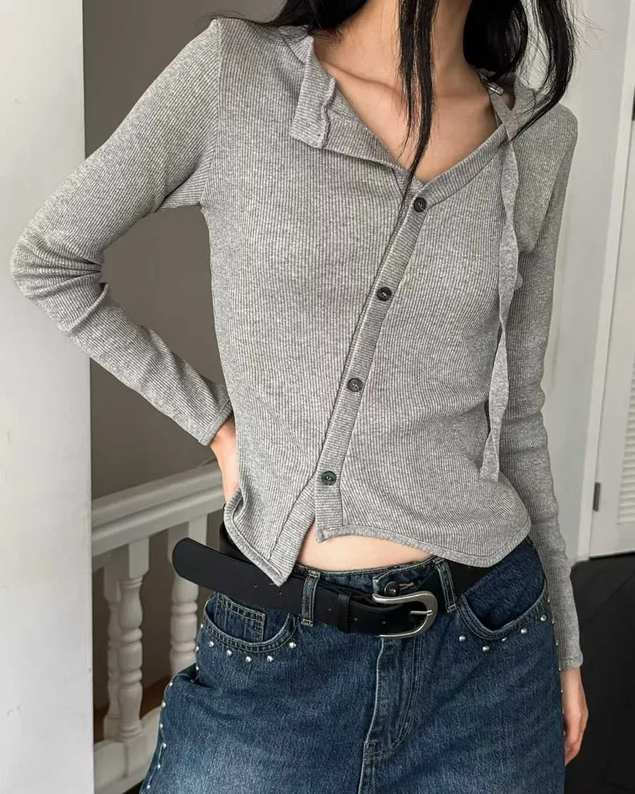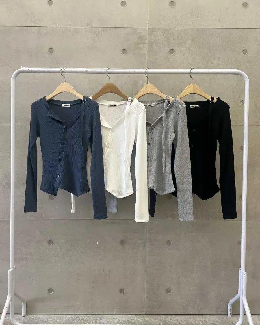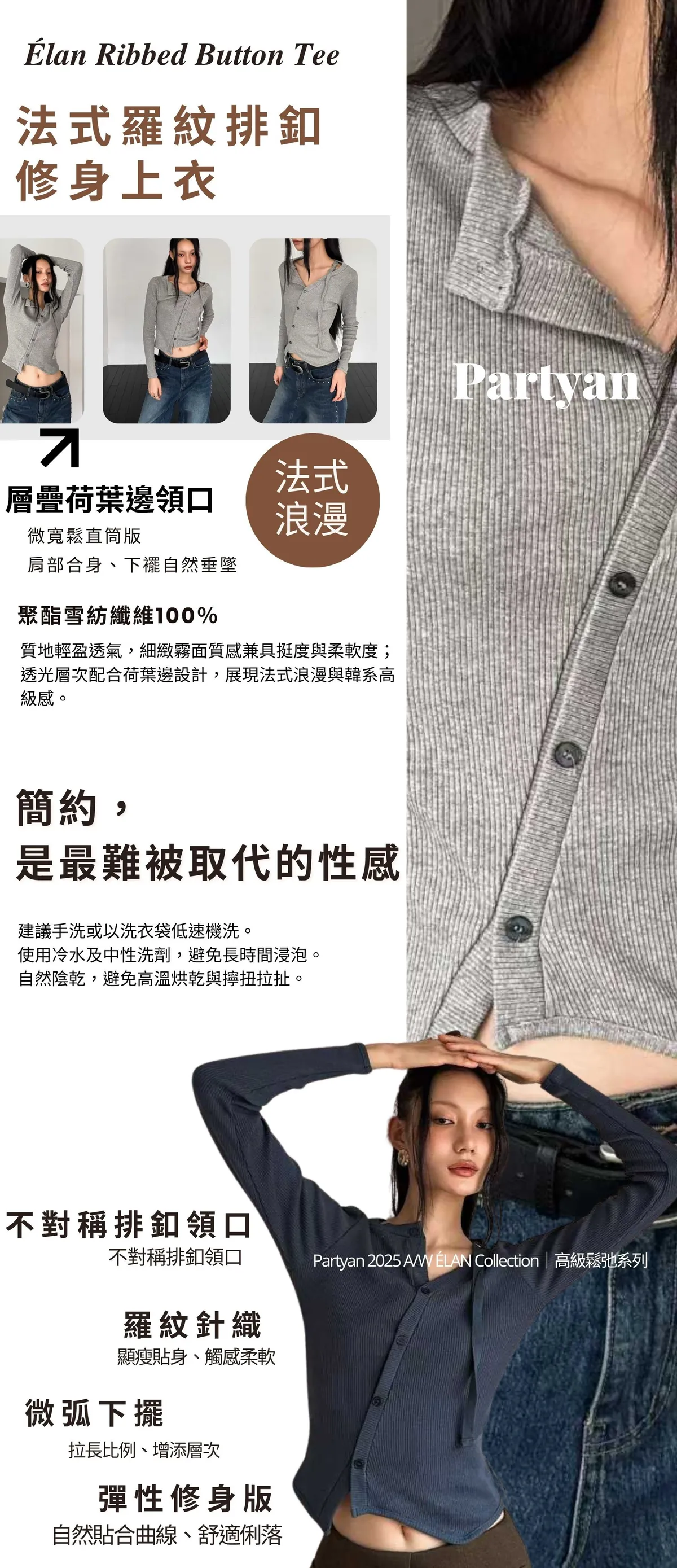 PARTYAN 韓國直送 Élan Ribbed Button Tee|法式羅紋排釦修身上衣