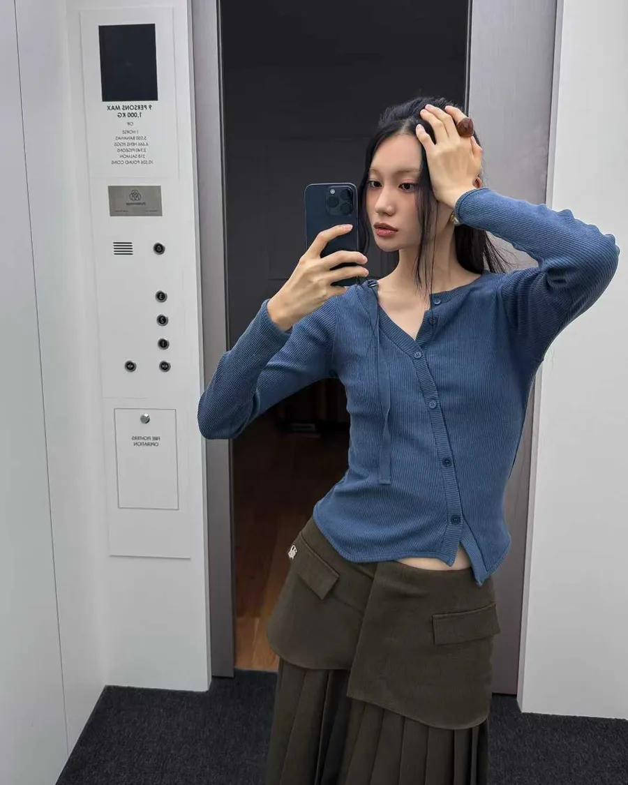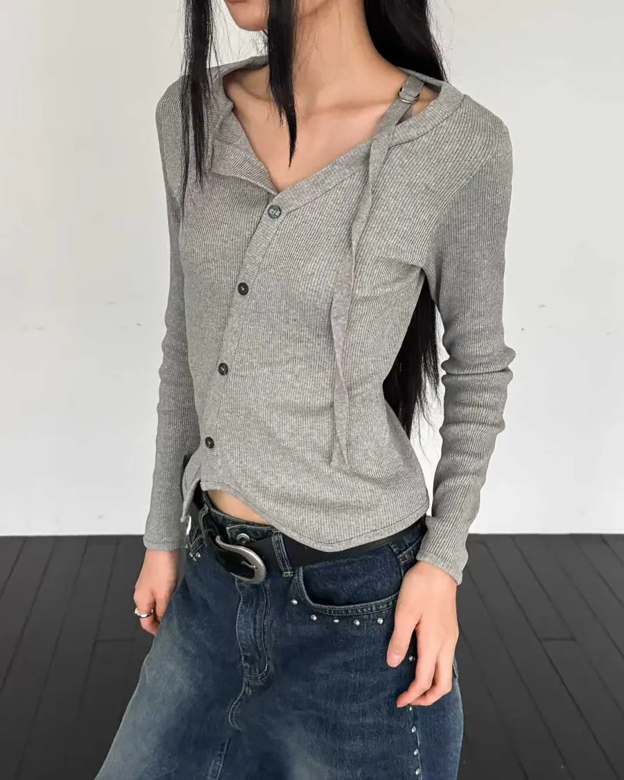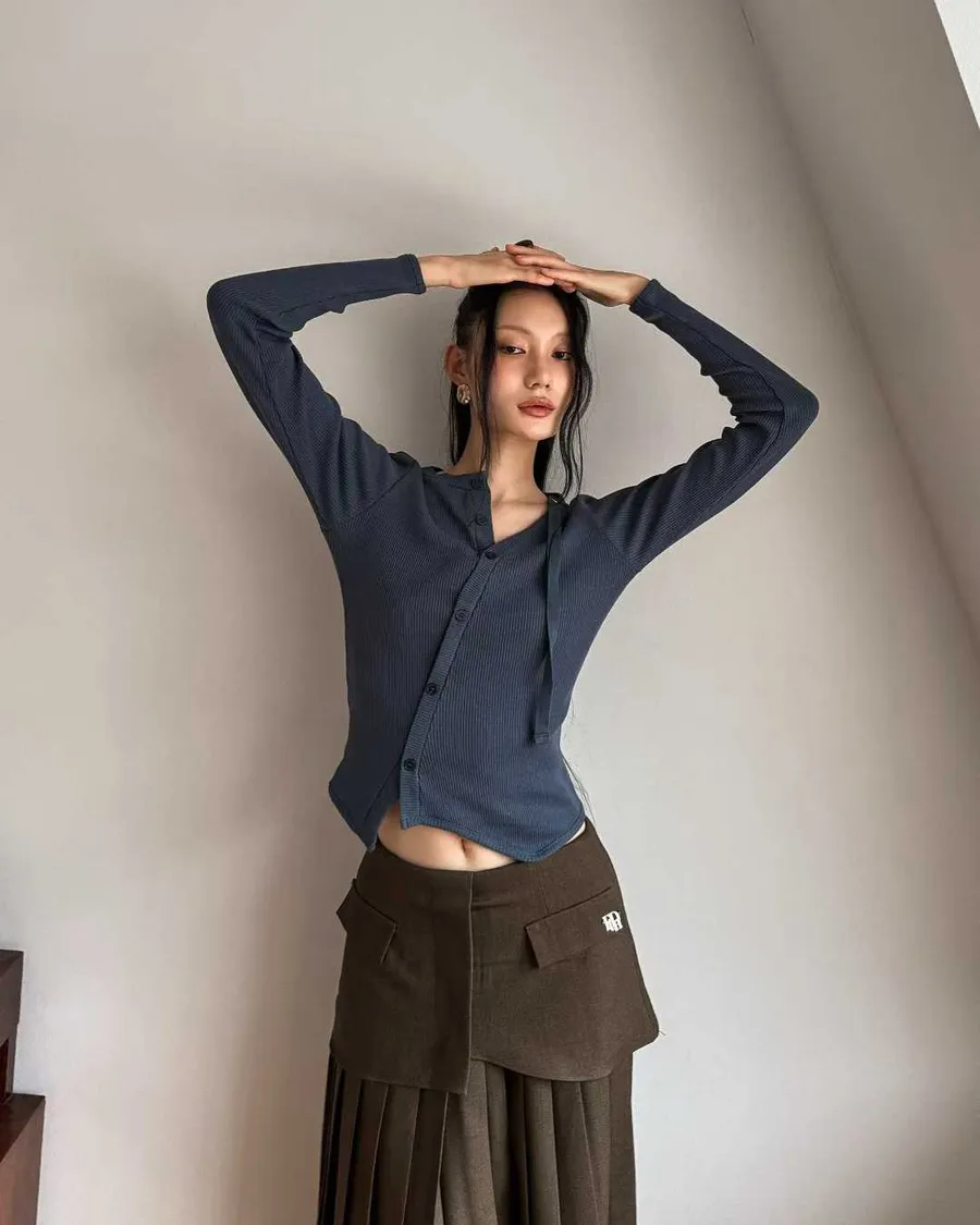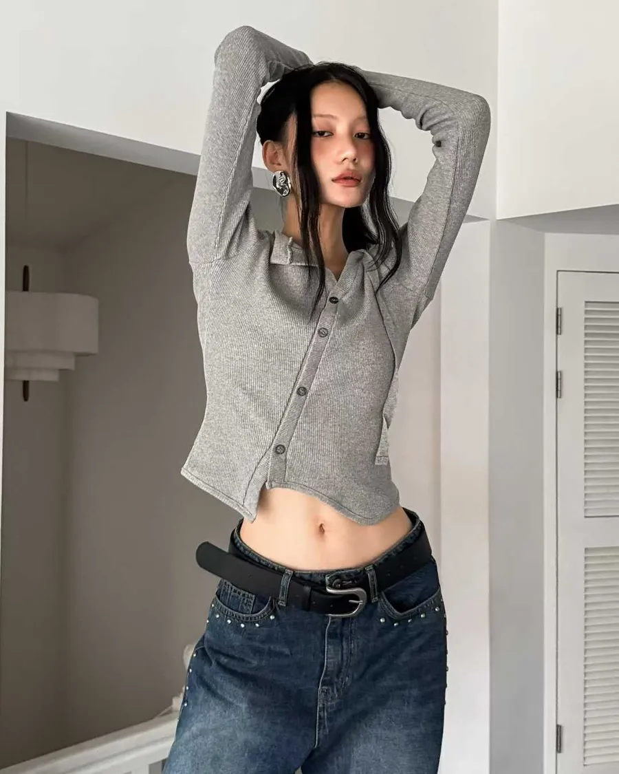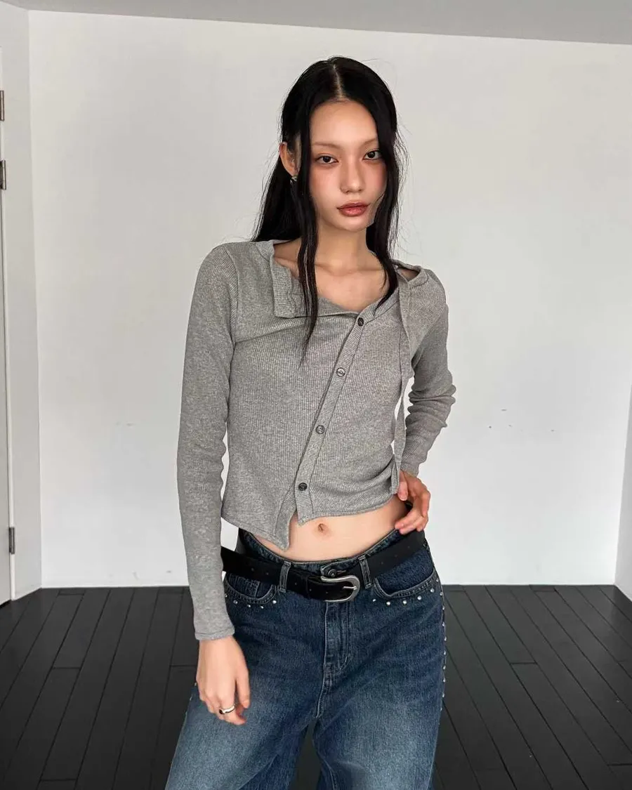 PARTYAN 韓國直送 Élan Ribbed Button Tee|法式羅紋排釦修身上衣