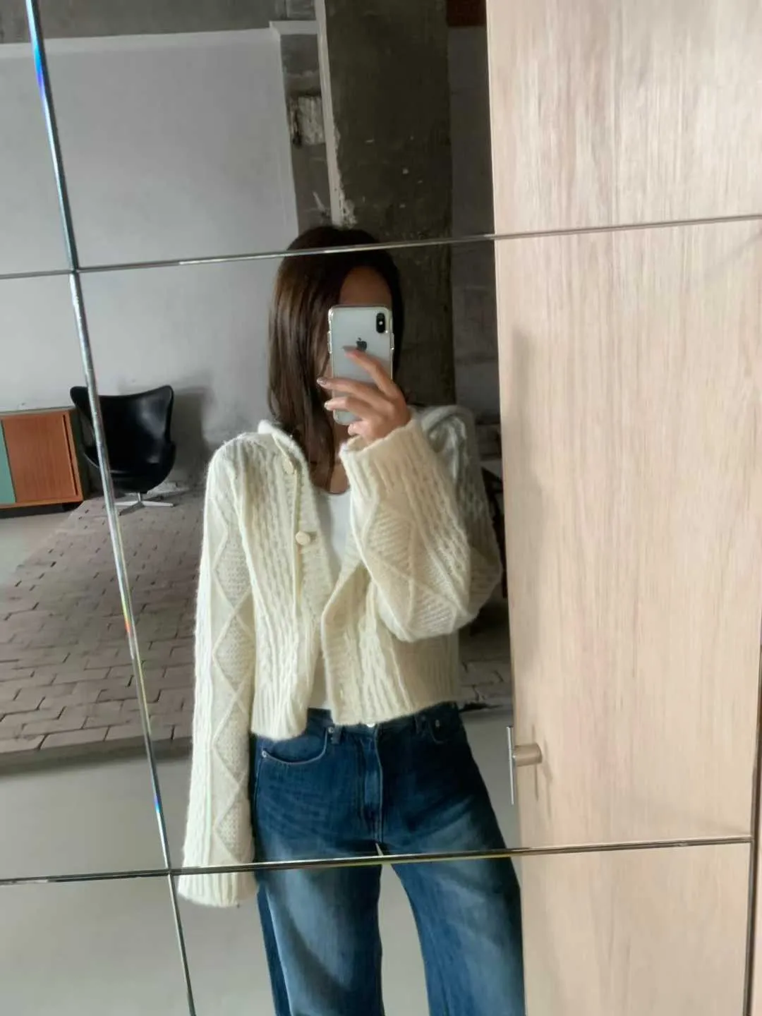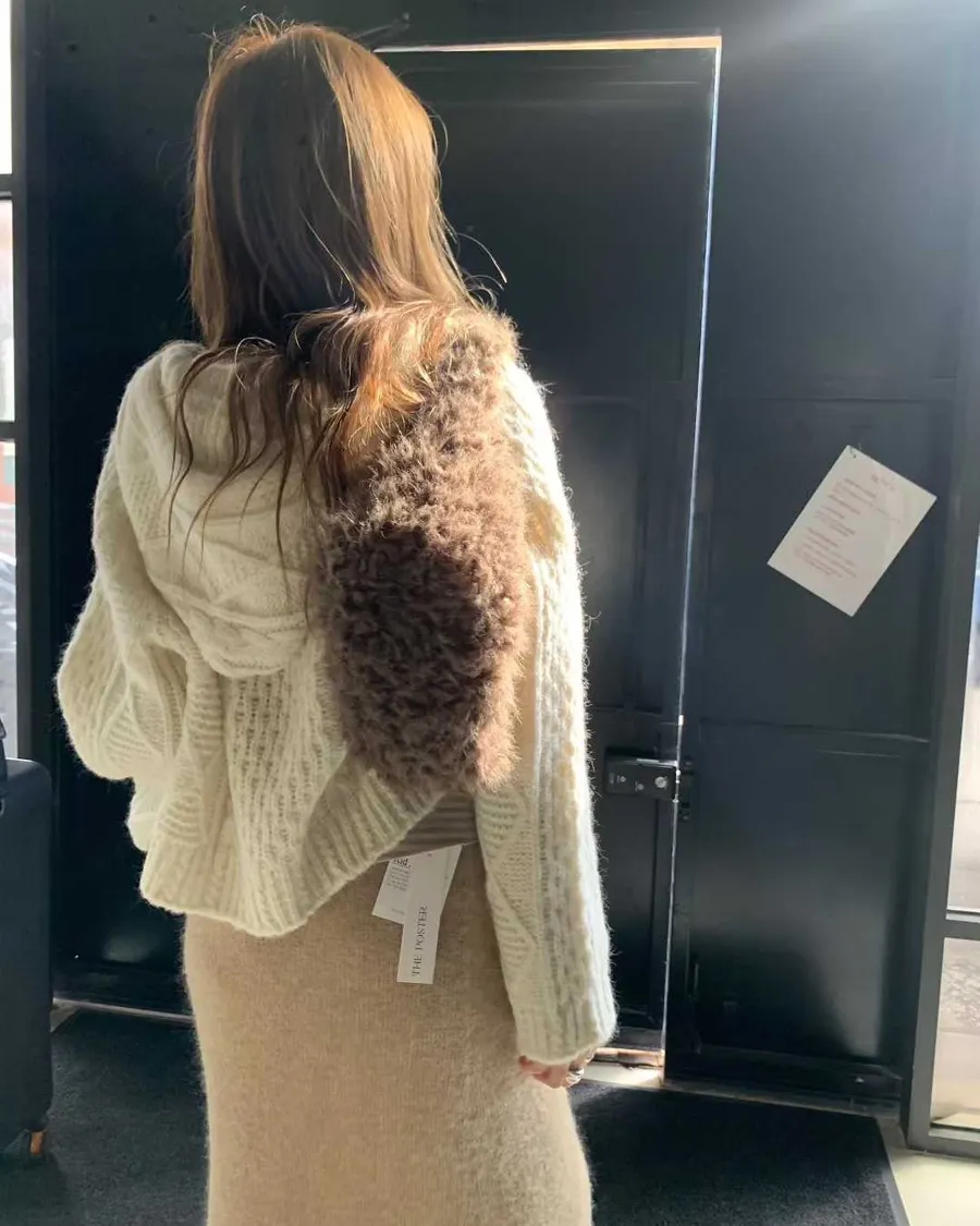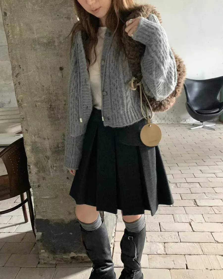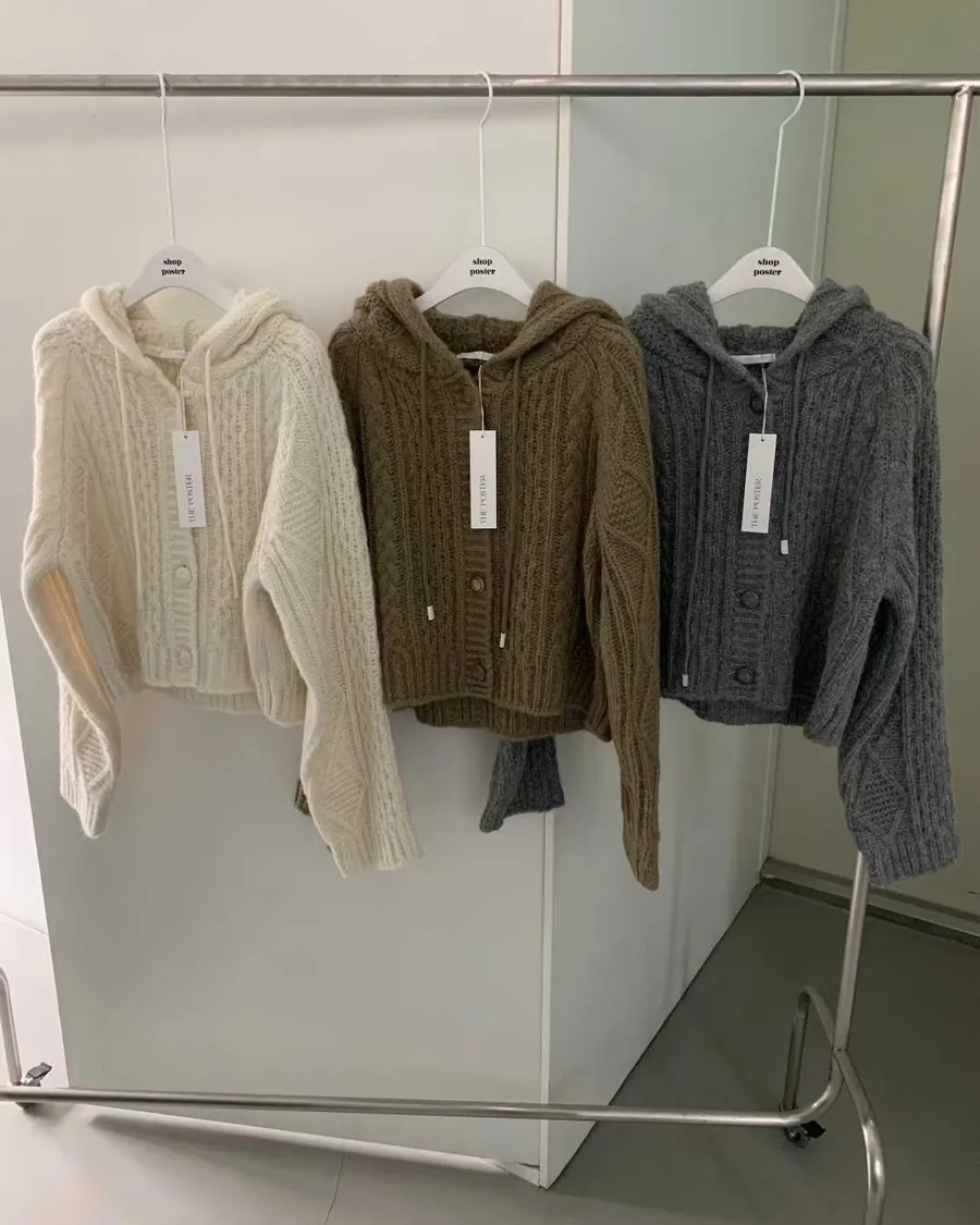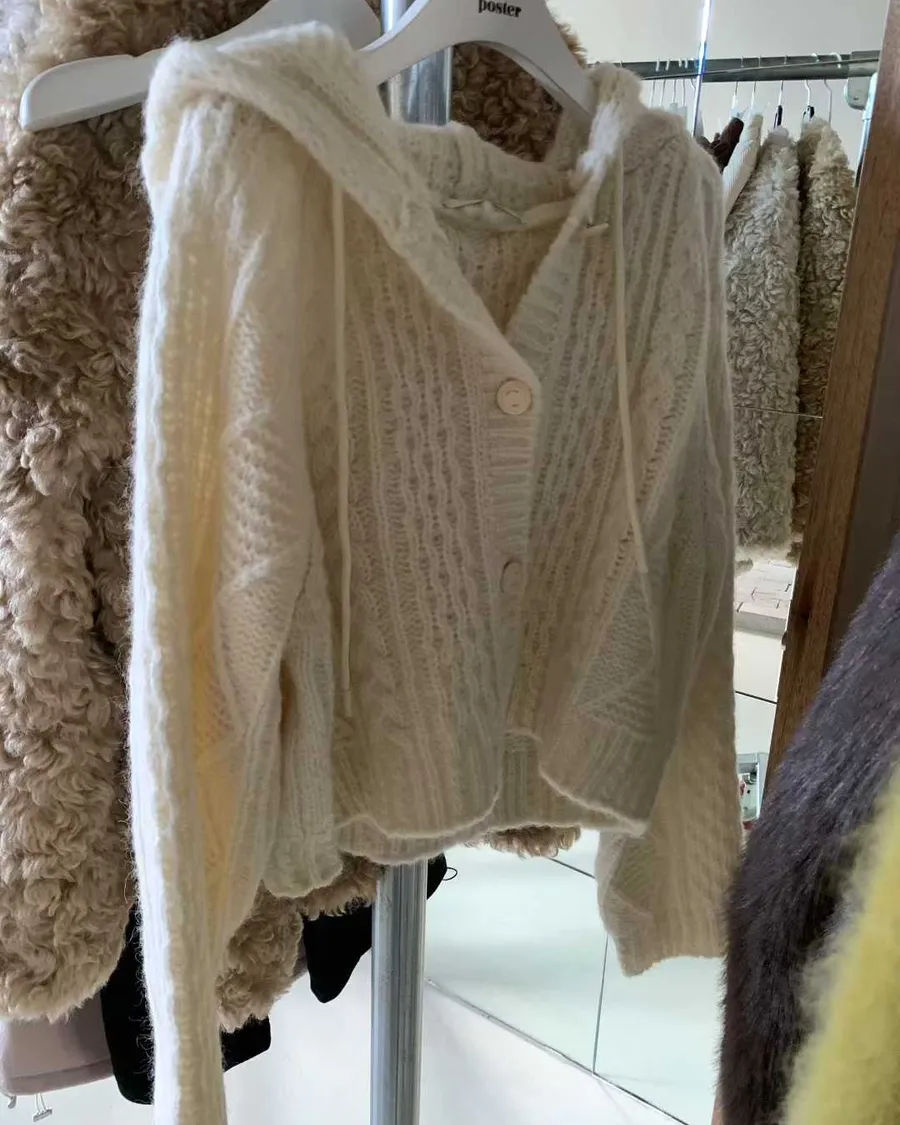 連帽+開襟設計,介於外套與針織衫之間的鬆弛版型。