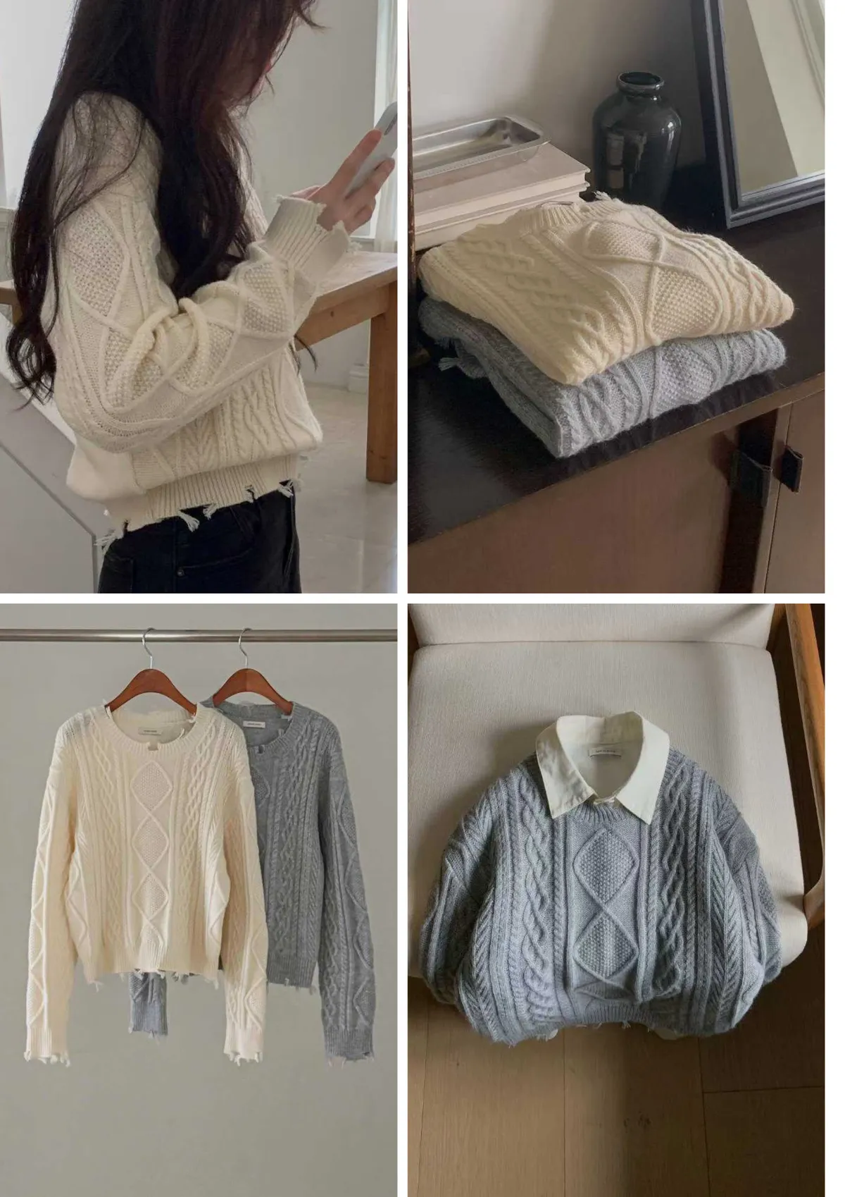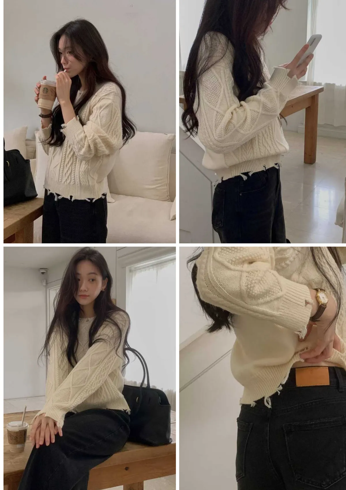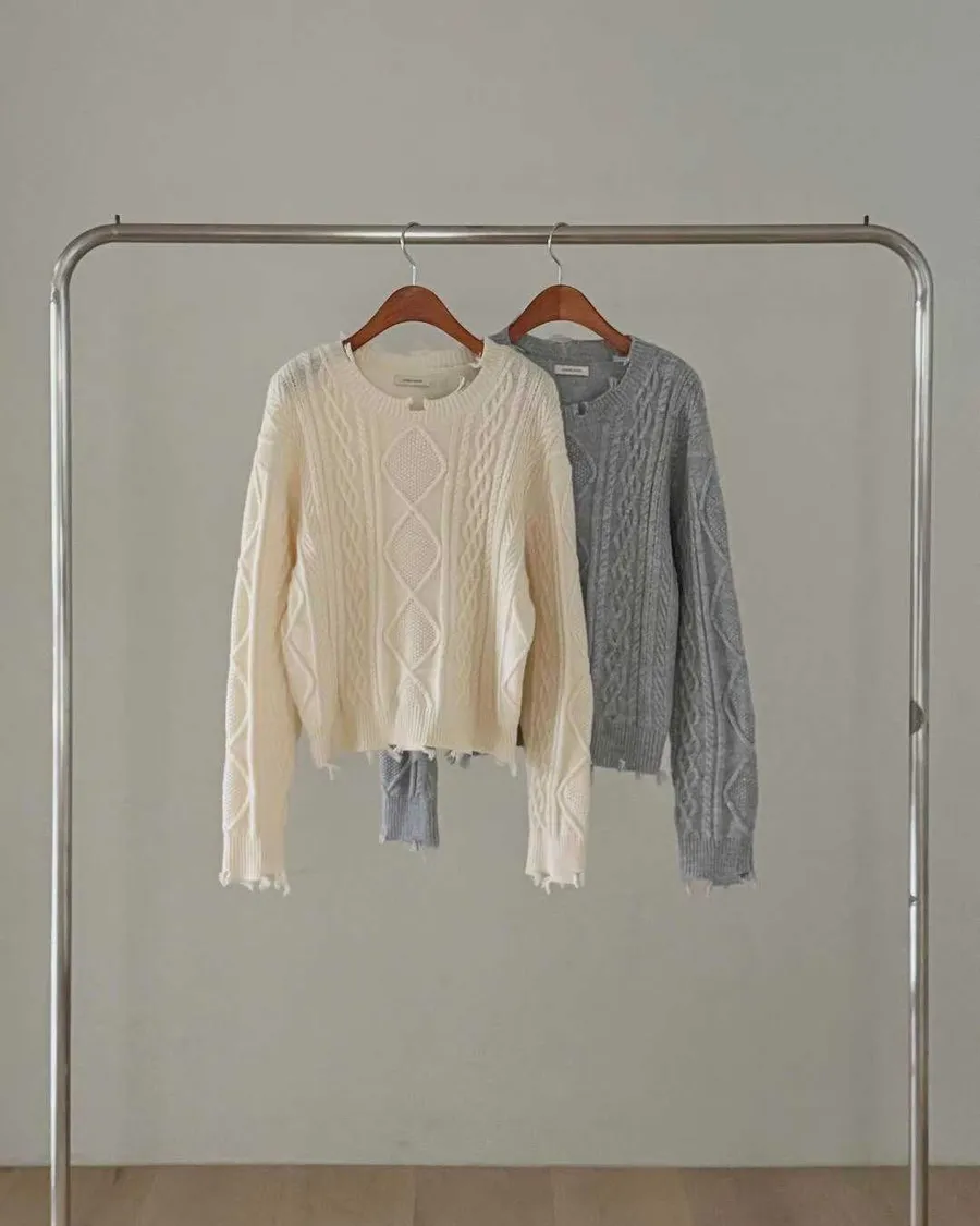 PARTYAN 韓國直送 Élan Fray Cable Knit Pullover|艾嵐麻花流蘇針織衫