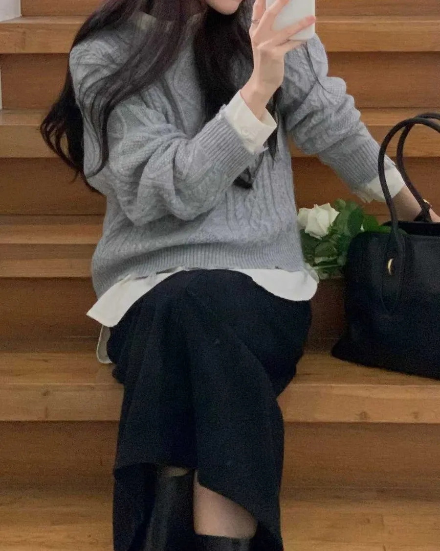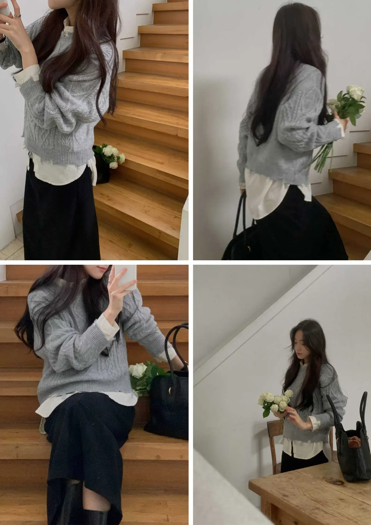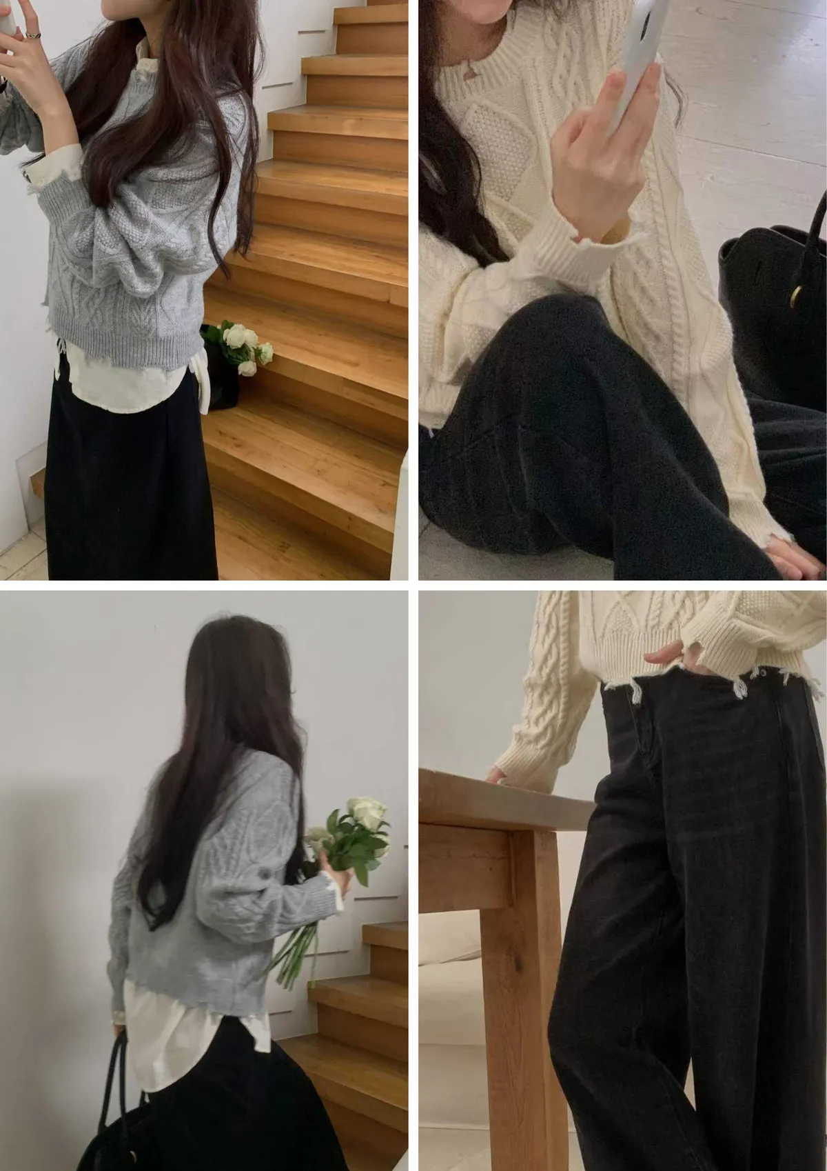 PARTYAN 韓國直送 Élan Fray Cable Knit Pullover|艾嵐麻花流蘇針織衫