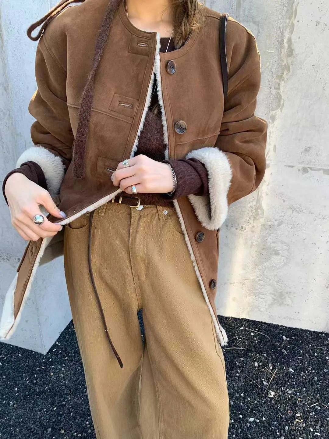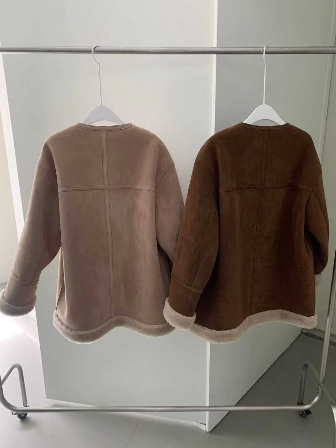 嚴選 韓國製高密度仿麂皮+厚實羊羔毛內裡,