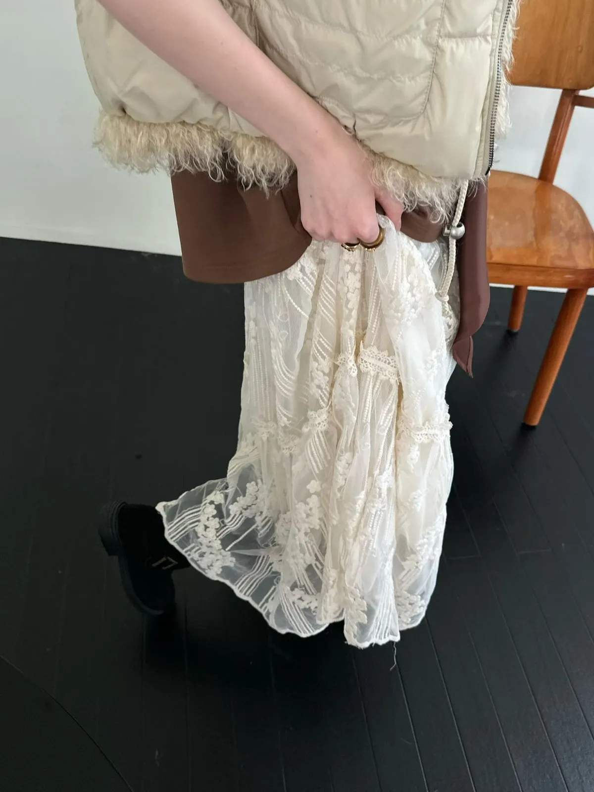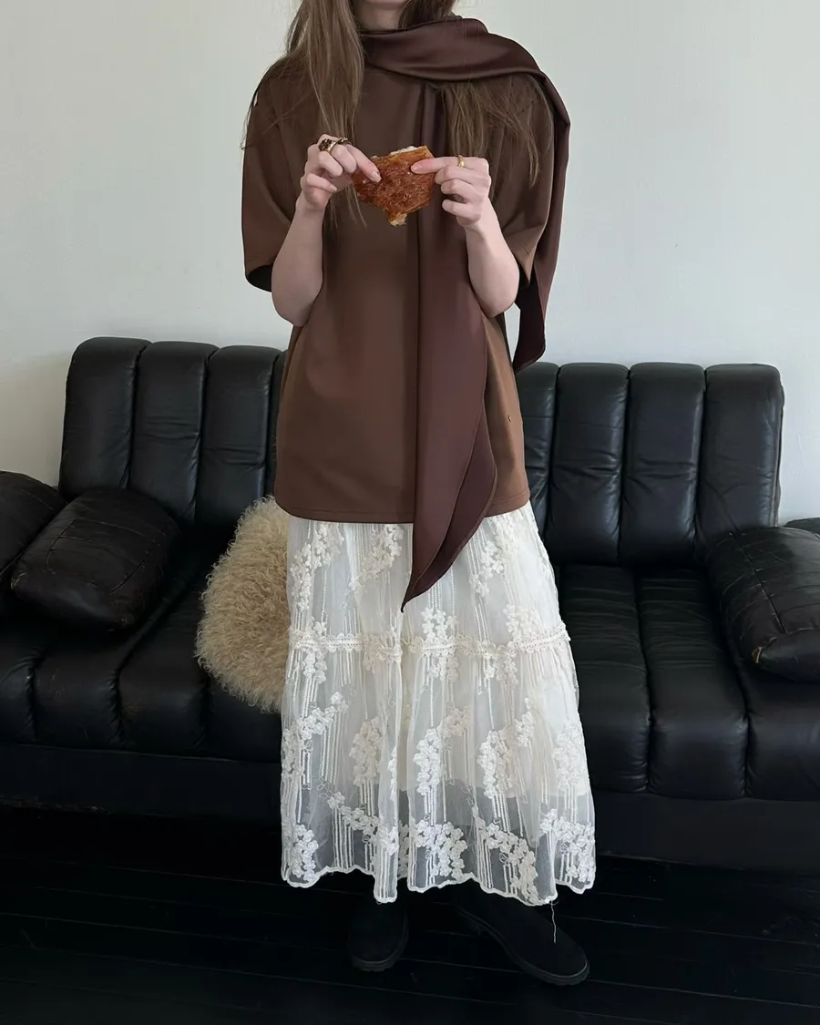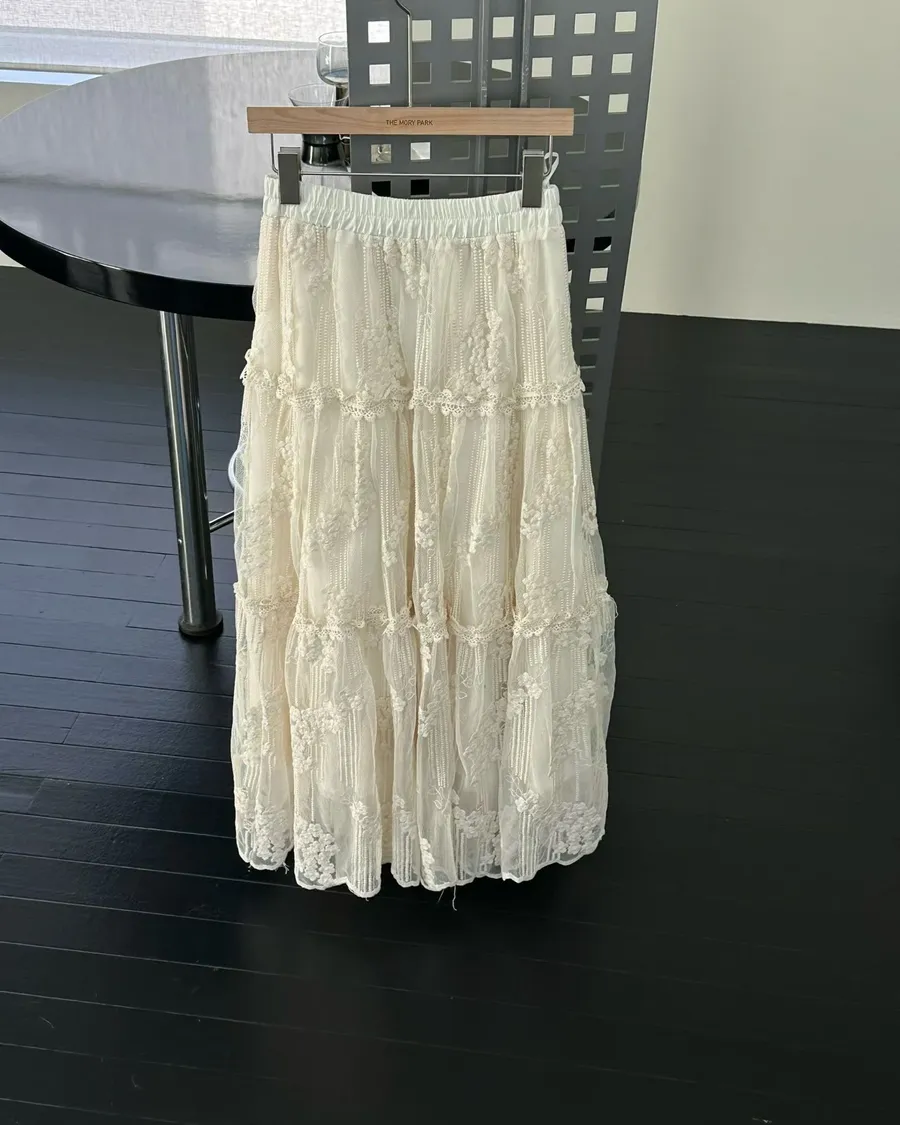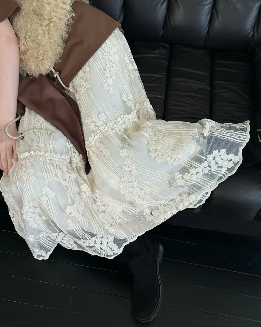 三層式立體蕾絲拼接,營造自然垂墜層次。