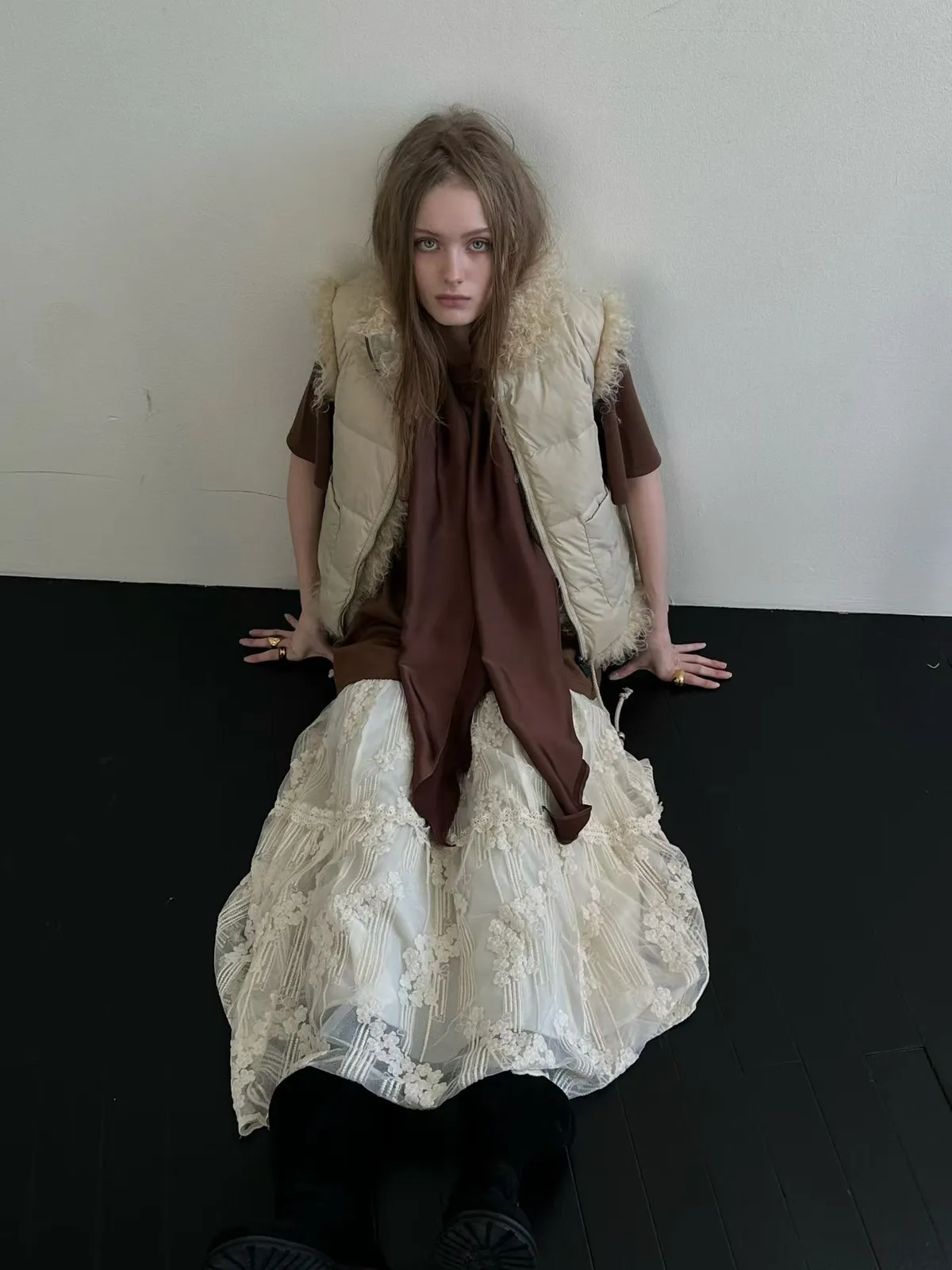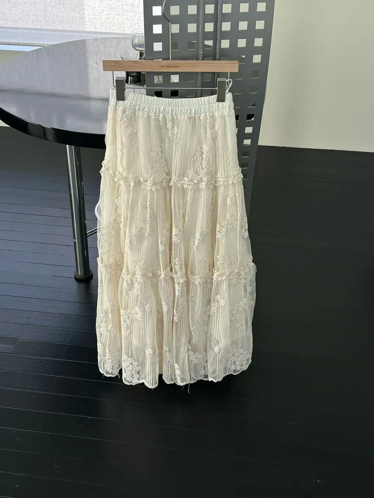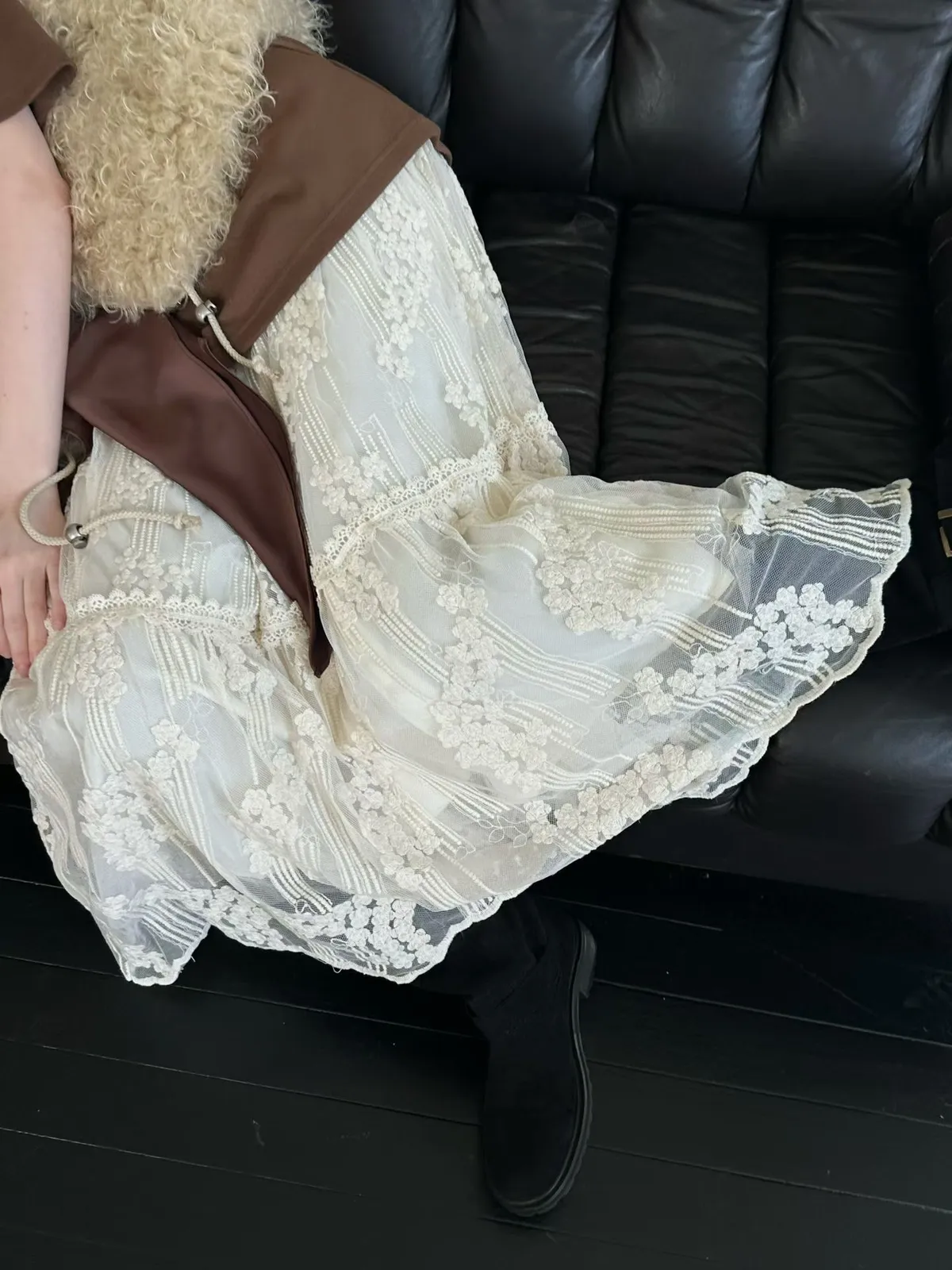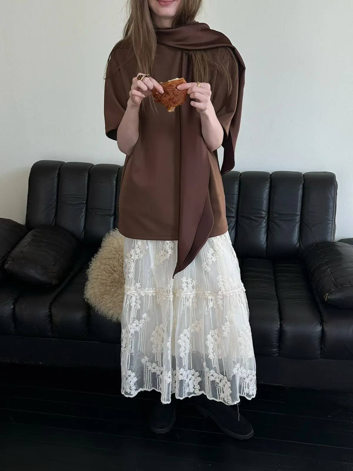 三層式立體蕾絲拼接,營造自然垂墜層次。