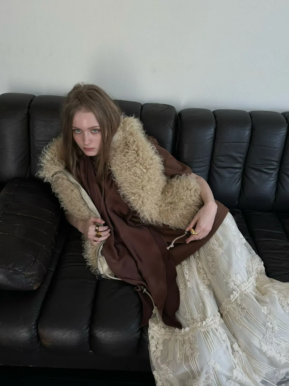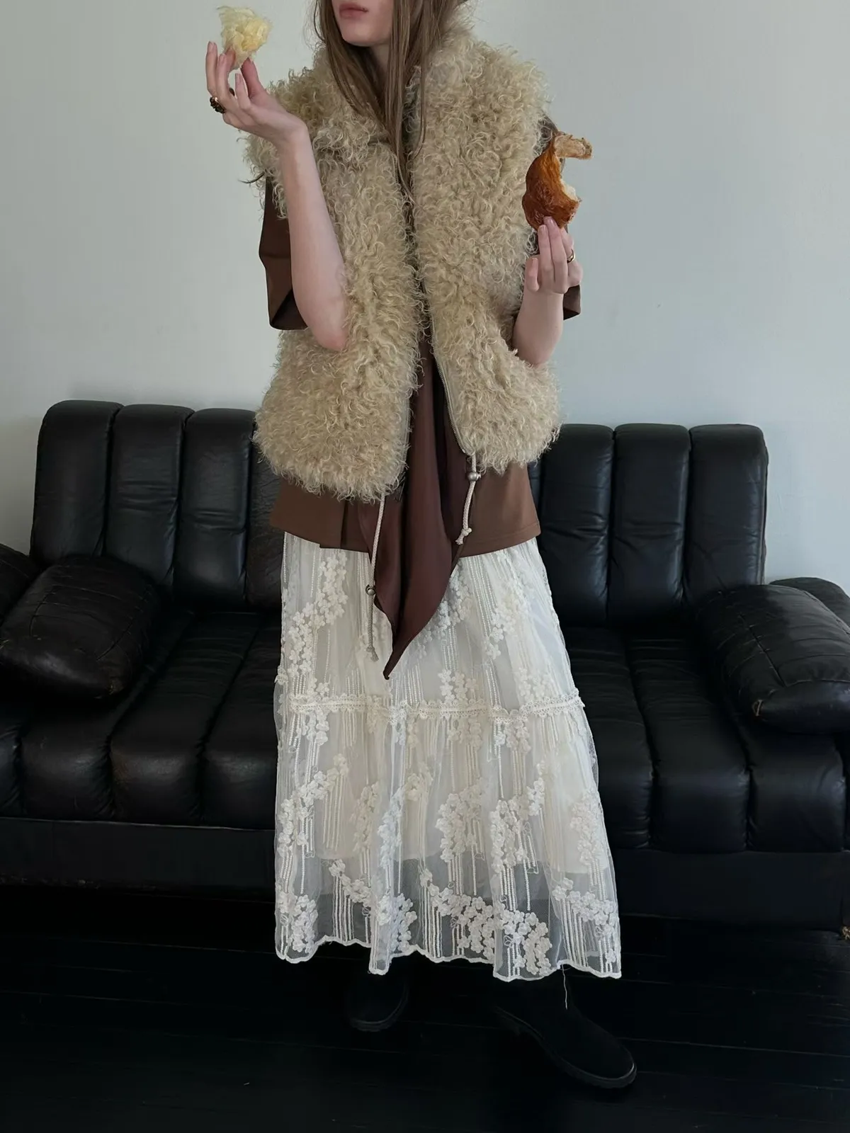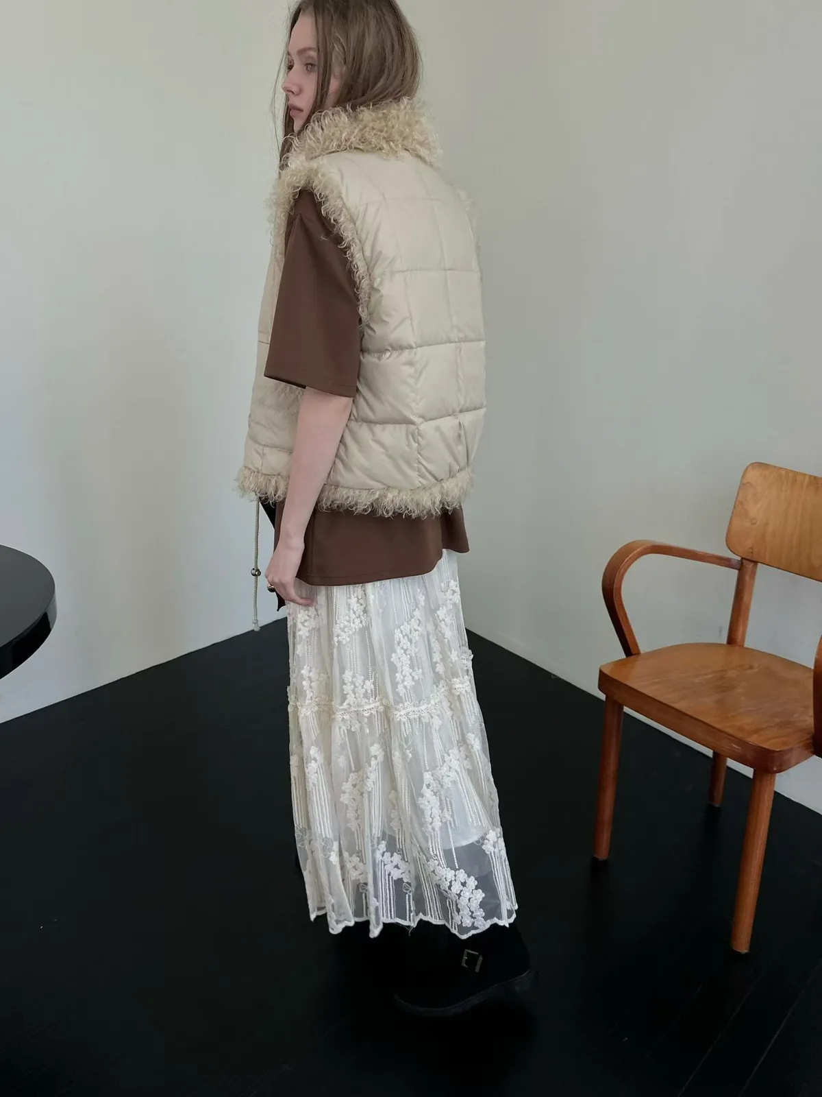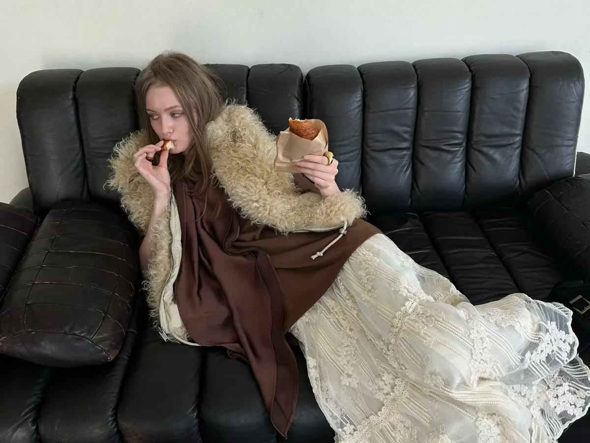 三層式立體蕾絲拼接,營造自然垂墜層次。