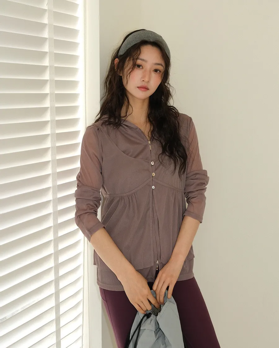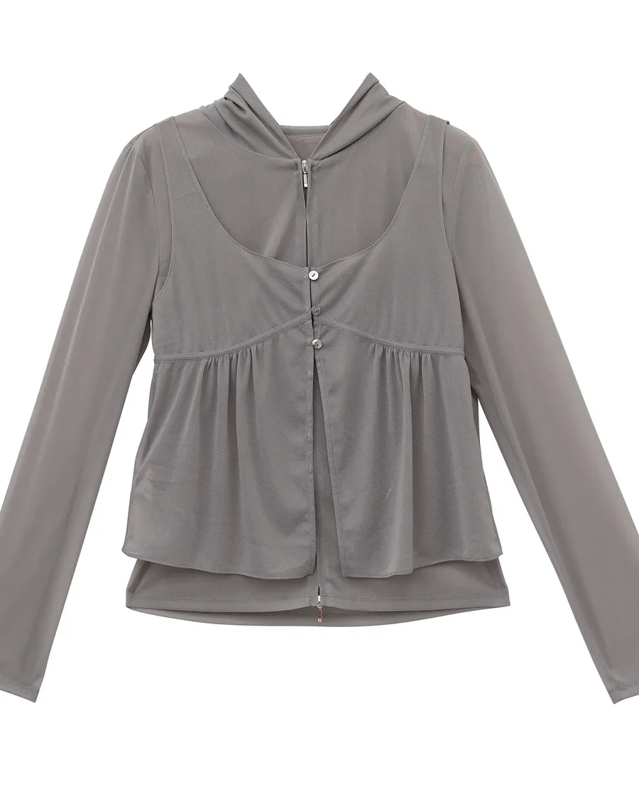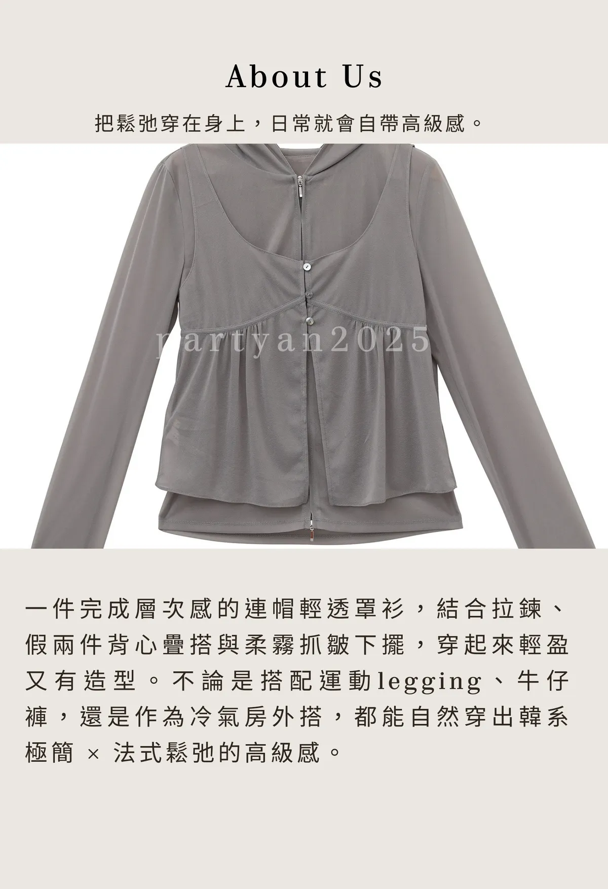 Partyan 設計 Élan Layered Hood Mesh Cardigan| 暮霧層次連帽罩衫
